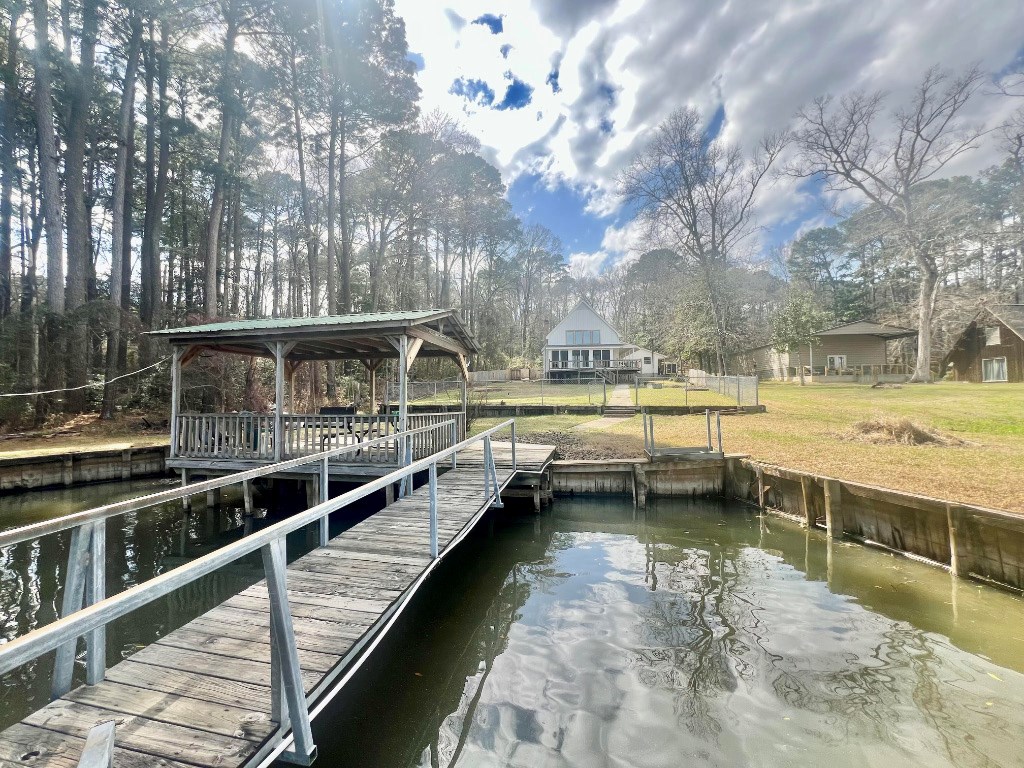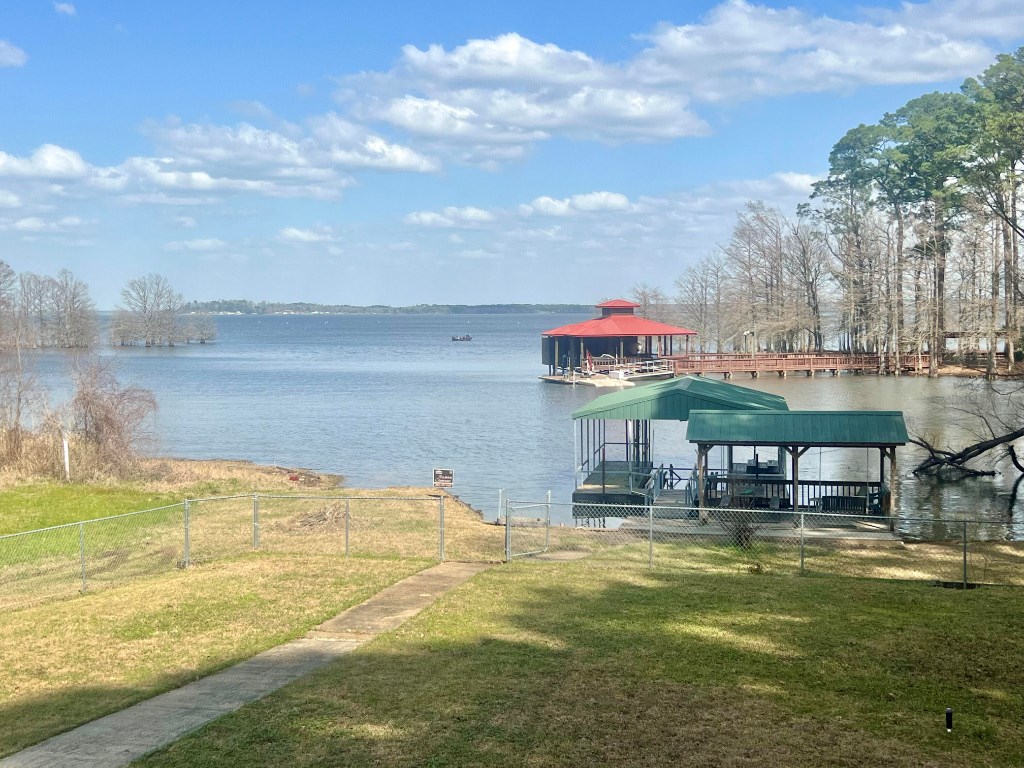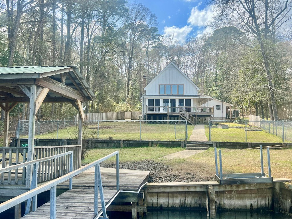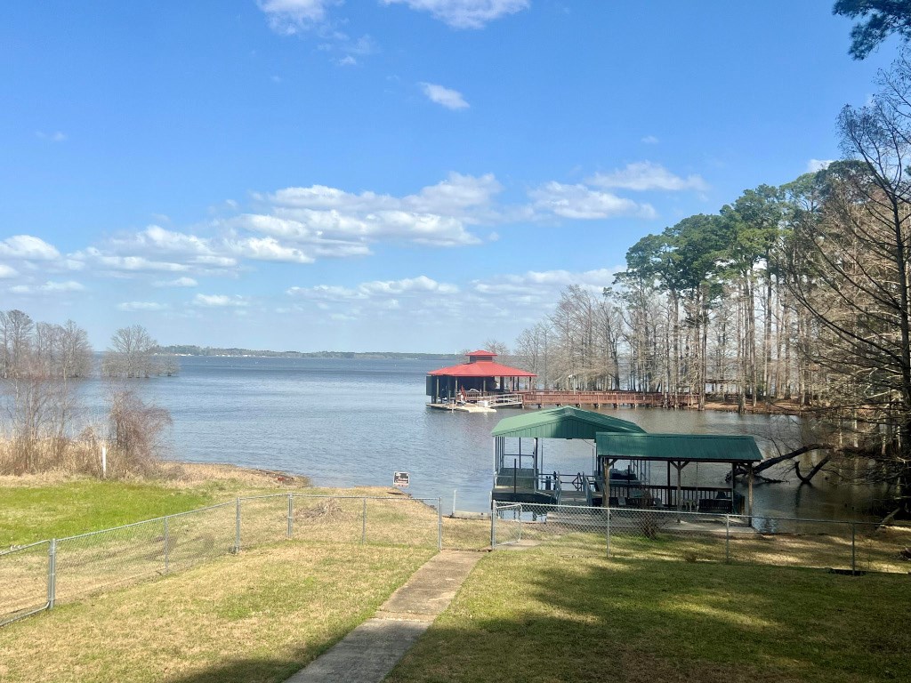 Lakeside Haven on Toledo Bend Escape to this charming 1 story waterfront retreat on Toledo Bend Lake! This fully furnished home features 4 spacious bedrooms accommodating up to 14 guests and 3 bathrooms for ultimate convenience. Enjoy morning coffee on the screened-in back porch with breathtaking lake views. The property boasts a floating boat dock for easy water access and a covered lakeside dining area perfect for sunrise meals. Entertain with peace of mind thanks to the secure fenced backyard. Whether fishing, boating, or simply relaxing by the water, this turnkey property offers everything needed for memorable lakeside living or vacation rental potential. 2 subdivision boat ramps and 2 more public ramps located just outside of the subdivision. This subdivision also has a 9 hole golf course. Your dream waterfront lifestyle awaits!