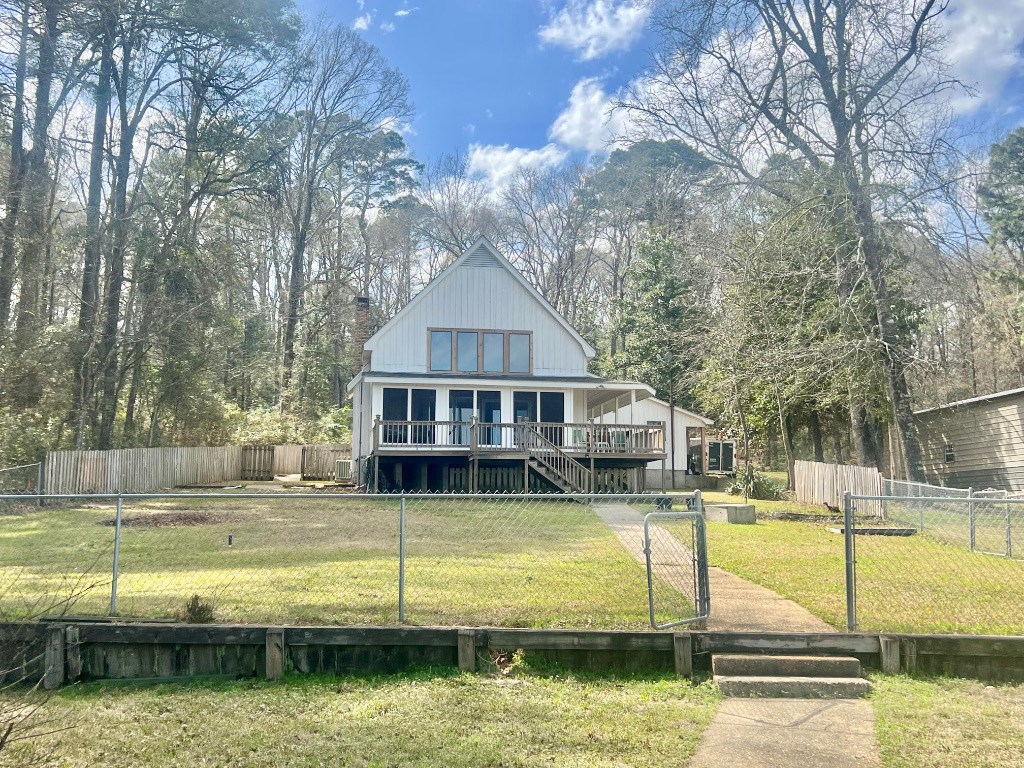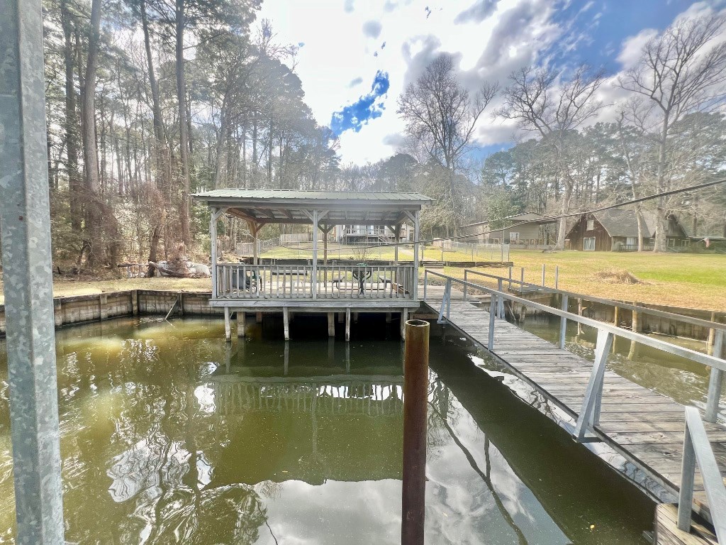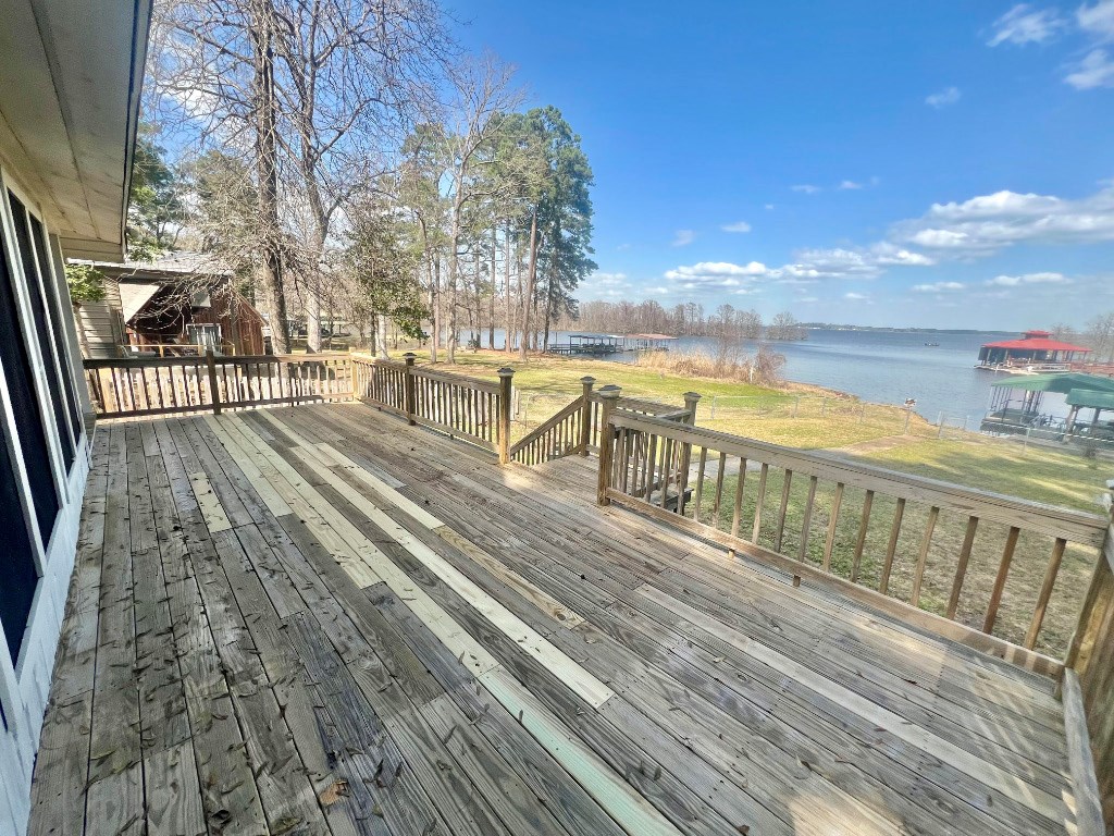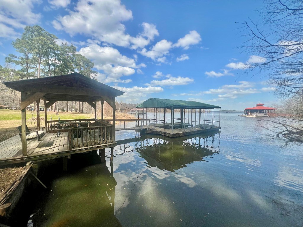 Lakeside Haven on Toledo Bend Escape to this charming 1 story waterfront retreat on Toledo Bend Lake! This fully furnished home features 4 spacious bedrooms accommodating up to 14 guests and 3 bathrooms for ultimate convenience. Enjoy morning coffee on the screened-in back porch with breathtaking lake views. The property boasts a floating boat dock for easy water access and a covered lakeside dining area perfect for sunrise meals. Entertain with peace of mind thanks to the secure fenced backyard. Whether fishing, boating, or simply relaxing by the water, this turnkey property offers everything needed for memorable lakeside living or vacation rental potential. 2 subdivision boat ramps and 2 more public ramps located just outside of the subdivision. This subdivision also has a 9 hole golf course. Your dream waterfront lifestyle awaits!