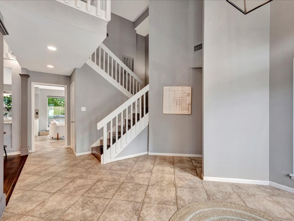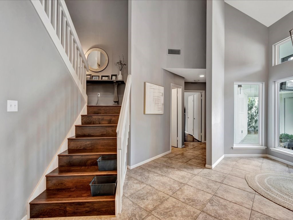 This beautifully maintained 2,600 sq ft home in the desirable Crown Colony neighborhood offers a spacious, open-concept multi-level layout that perfectly balances function and style. The main floor features a generously sized master suite with a large en-suite bathroom, walk-in closet, plus two additional closets. While the upper level includes additional bedrooms and a versatile loft space with Murphy bed. Soaring ceilings and large windows throughout the home fill every room with natural light, enhancing the warm and welcoming atmosphere. Thoughtful interior updates were completed in 2022, including fresh paint, modern fixtures, and updated landscaping, giving the home a fresh, contemporary feel. Step outside into a beautifully designed backyard oasis, complete with a custom Gunite pool, a relaxing hot tub, and an extended pool deck added in 2024. The exterior was freshly repainted and fitted with brand-new gutters in September 2025, ensuring long-term curb appeal and peace of mind.
