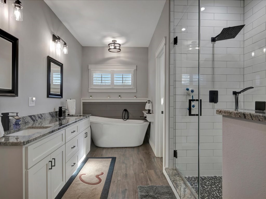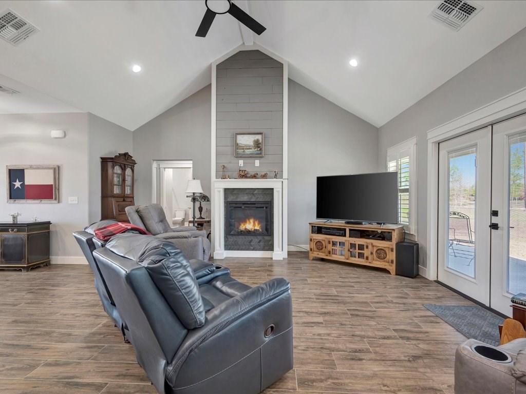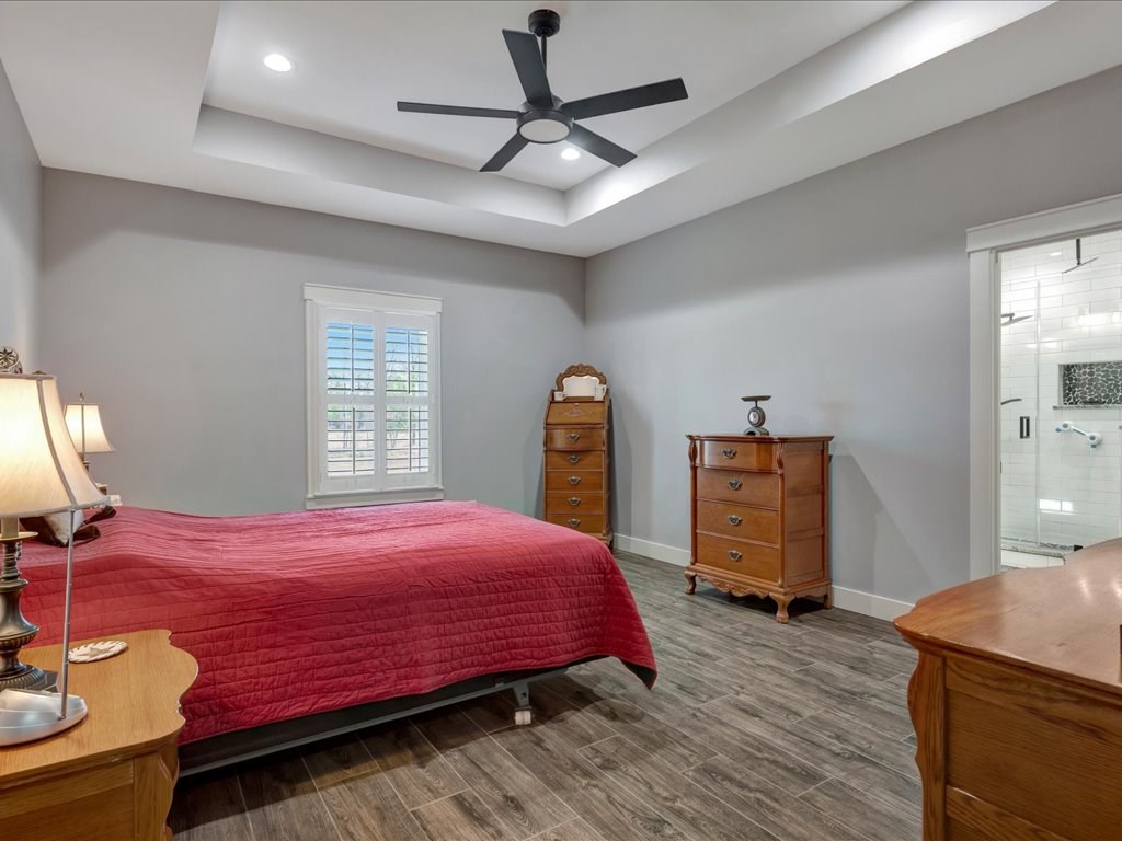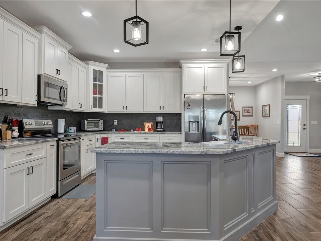 Experience comfort and space in this thoughtfully designed home on 2.5 acres. A welcoming covered front porch opens to an open-concept layout ideal for everyday living and entertaining. Plantation shutters and dimmer switches add style and customizable ambiance throughout. The island kitchen offers ample counter space and a pantry, flowing into the formal dining room and cozy breakfast nook. A dedicated office provides an ideal work-from-home space. The split bedroom plan ensures privacy, with a spacious primary suite featuring a large walk-in closet, dual sinks, a soaking tub, and an oversized shower. Additional features include a double attached garage, a Generac whole-house propane generator, and an active Terminix maintenance plan with bait stations. Outdoor amenities include a 49x30 open-space barn with security lighting and a 20x40 enclosed building with 10' roll-up doors and 220 power—perfect for storage, hobbies, or projects.