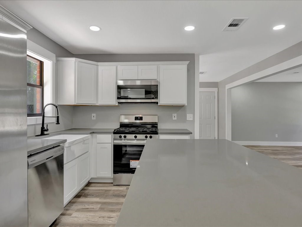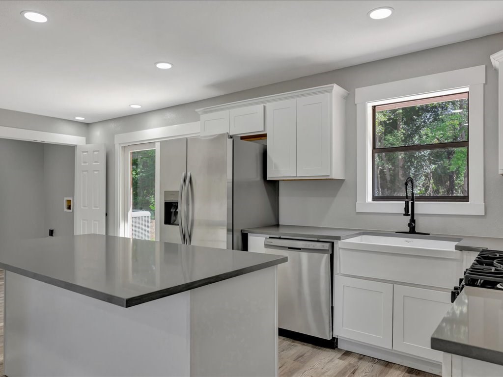 Offering $3,500 in seller concessions! Situated on a large .62 acre lot, 1108 Crooked Creek is a stunning, newly renovated 3 bed, 2 bath option if you're in the market for a home. Not to mention affordable! The lot is wooded along the back side toward the loop, which acts as a great noise barrier and gives privacy you will appreciate. The back of the home offers a nice patio and wonderful space for a fenced in yard. The home itself is a perfect size of 1618 sqft, and offers a semi-open concept floor plan. The living, dining, and kitchen blend together well. The kitchen boasts a sizable walk in pantry, and the laundry room is off the breakfast nook as well. All bedrooms, on the left side of the house, have nice closet space, and the master has an attached ensuite. Lastly, the long driveway offers ample parking in front of the double garage, and the garage offers a large storage closet.