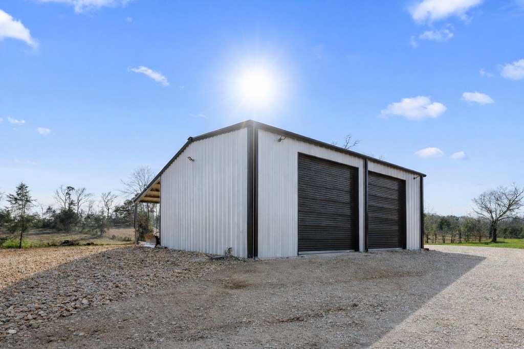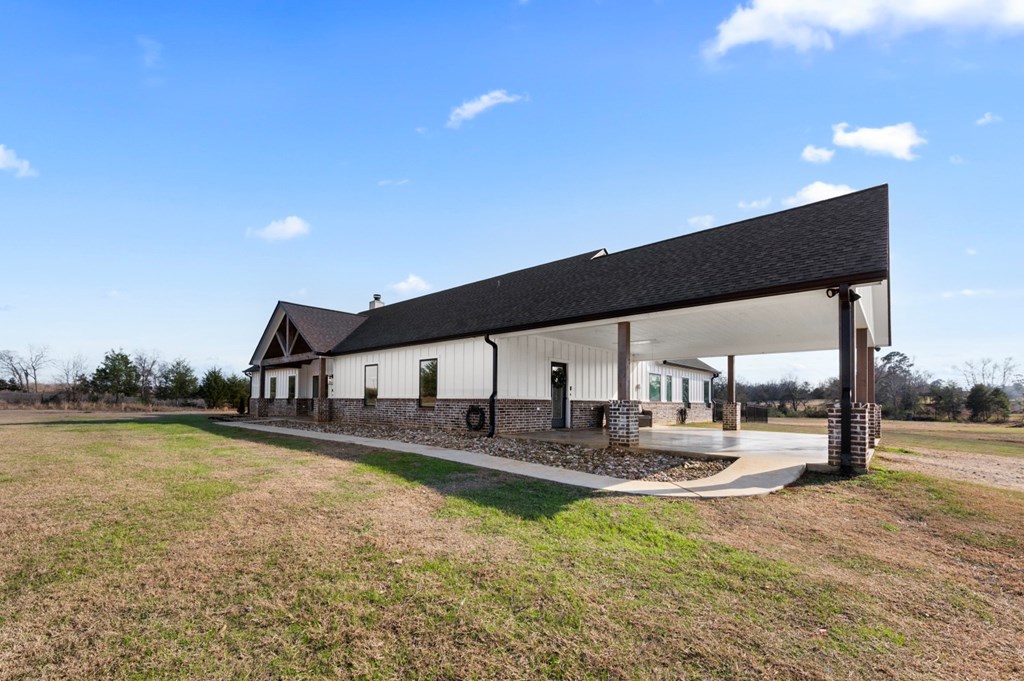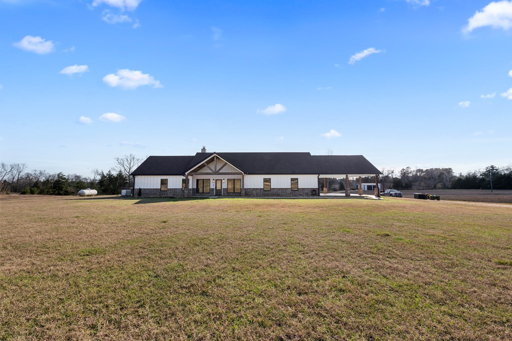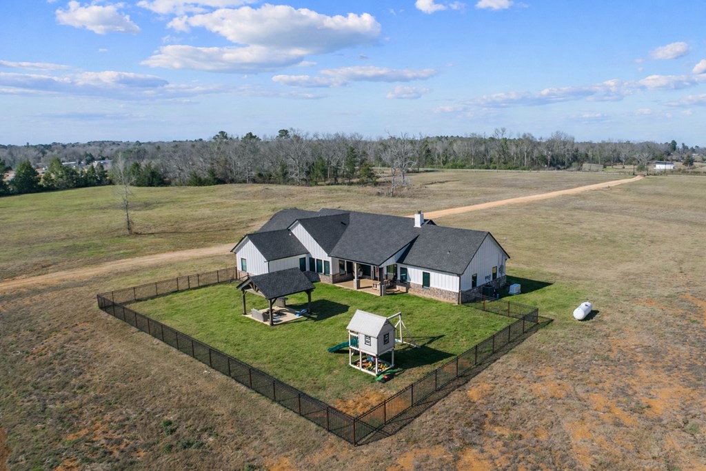 Modern farmhouse built in 2023 on unrestricted 61.15 acres. This 3BR | 3.5 BA home offers an open concept floorplan with high vaulted ceilings and quality custom finishes throughout. The primary suite includes a custom tile shower, jetted soaking tub, and direct access to the laundry room through an oversized walk in closet. Split floorplan with ensuite bathrooms and walk in closets for each additional bedroom plus a home office. Kitchen features custom cabinetry with pot and pan storage, gas cooktop, double ovens, pantry, and refrigerator conveying. Additional features include a gas fireplace, tankless water heater, water softener, central gas heating and cooling, Generac whole home generator, and attached carport. Property offers a private automatic gated entrance, fenced backyard, covered porch, gazebo, cross fencing, cleared pasture, partial woods, creek, and a 1.5 acre pond. A 30x40 shop with water, electric, and lean to for equipment storage and so much more. Must See Property!