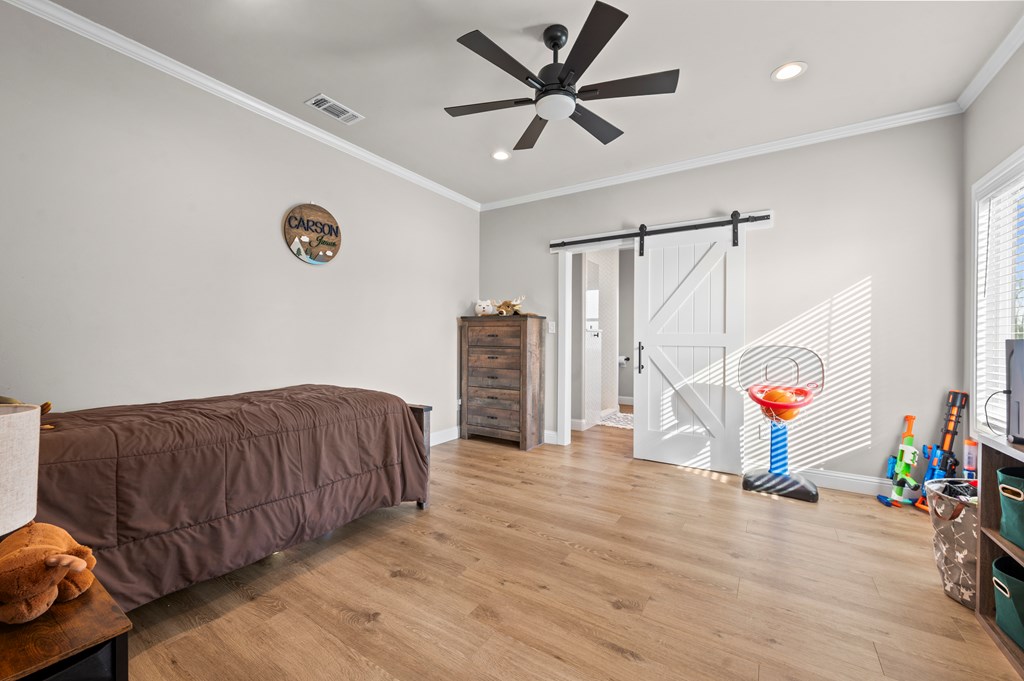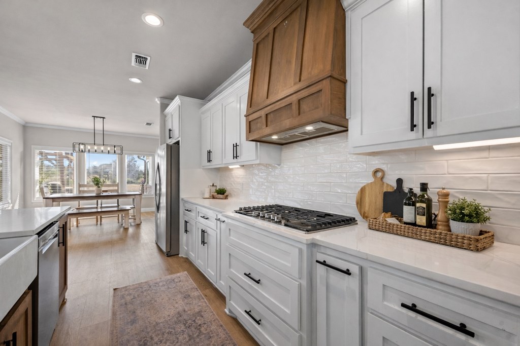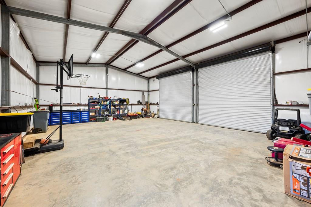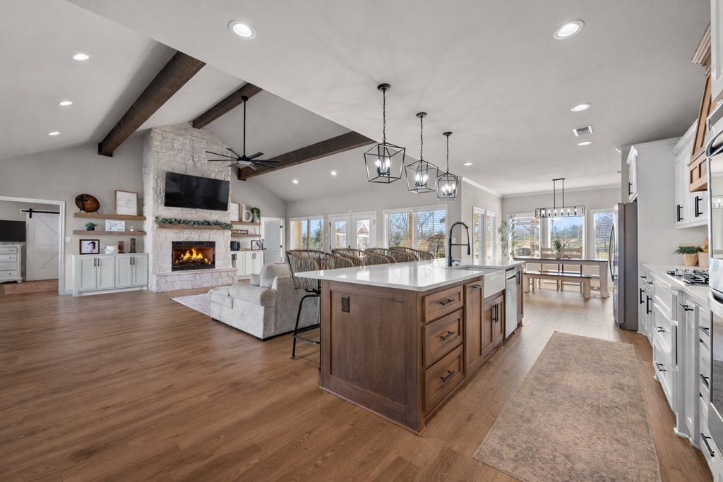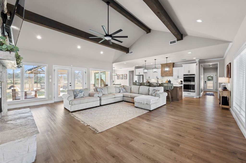 Modern farmhouse built in 2023 on unrestricted 61.15 acres. This 3BR | 3.5 BA home offers an open concept floorplan with high vaulted ceilings and quality custom finishes throughout. The primary suite includes a custom tile shower, jetted soaking tub, and direct access to the laundry room through an oversized walk in closet. Split floorplan with ensuite bathrooms and walk in closets for each additional bedroom plus a home office. Kitchen features custom cabinetry with pot and pan storage, gas cooktop, double ovens, pantry, and refrigerator conveying. Additional features include a gas fireplace, tankless water heater, water softener, central gas heating and cooling, Generac whole home generator, and attached carport. Property offers a private automatic gated entrance, fenced backyard, covered porch, gazebo, cross fencing, cleared pasture, partial woods, creek, and a 1.5 acre pond. A 30x40 shop with water, electric, and lean to for equipment storage and so much more. Must See Property!