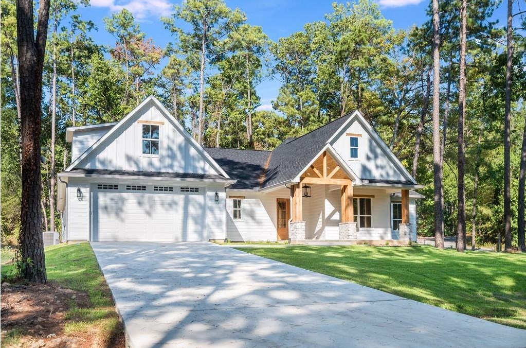 WELCOME HOME! Come discover the lakeside lifestyle in this exceptional 5-bedrooom, 3-bathroom modern farmhouse. Step inside to find warm wood floors throughout the main living areas, enhanced by elegant tile floors in each bathroom. The premium cabinetry pairs well with the marbled quartz counter tops. Enjoy the beautiful gold and matte black finish each room offers. This home is located within walking distance of Lake Sam Rayburn beaches and other outdoor activities. As a part of the exclusive Rayburn Country resort, you'll have access to a swimming pool, basketball courts, and MORE! The golfers will appreciate the nearby 18-hole championship course at the country club. Also, enjoy a spacious 30x23 garage with a 10-foot entrance to accommodate toys and gear!