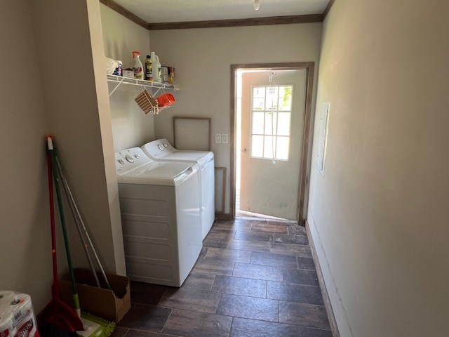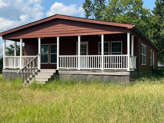 Great Space for retired or downsizing. Large custom built modular home with a country feel-2 large bedrooms each with a bathroom. Huge open concept living room-kitchen area. Neat kitchen with island, electric range with large vent hood for extra cooking and all appliances. Has its own pantry and utility area with room for a freezer. Bonus building custom designed for office and craft or workshop areas. Come Home and sit on the porch to relax and enjoy the sights and sounds of nature.