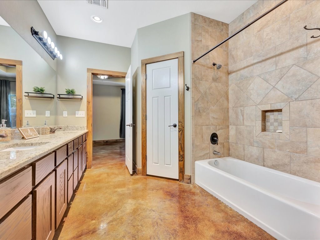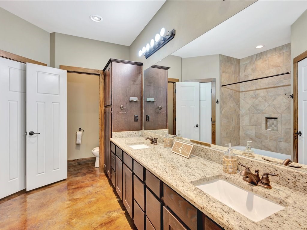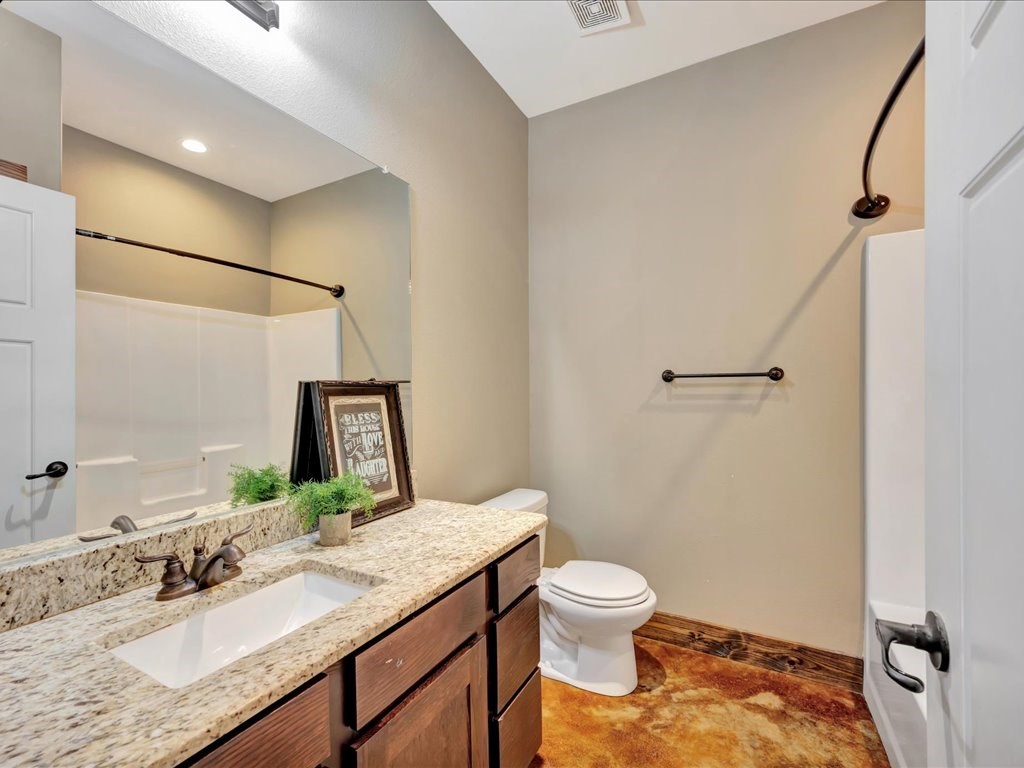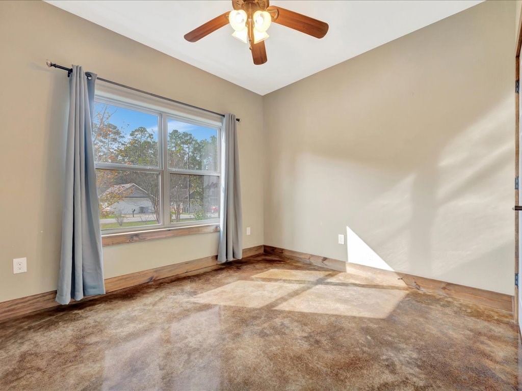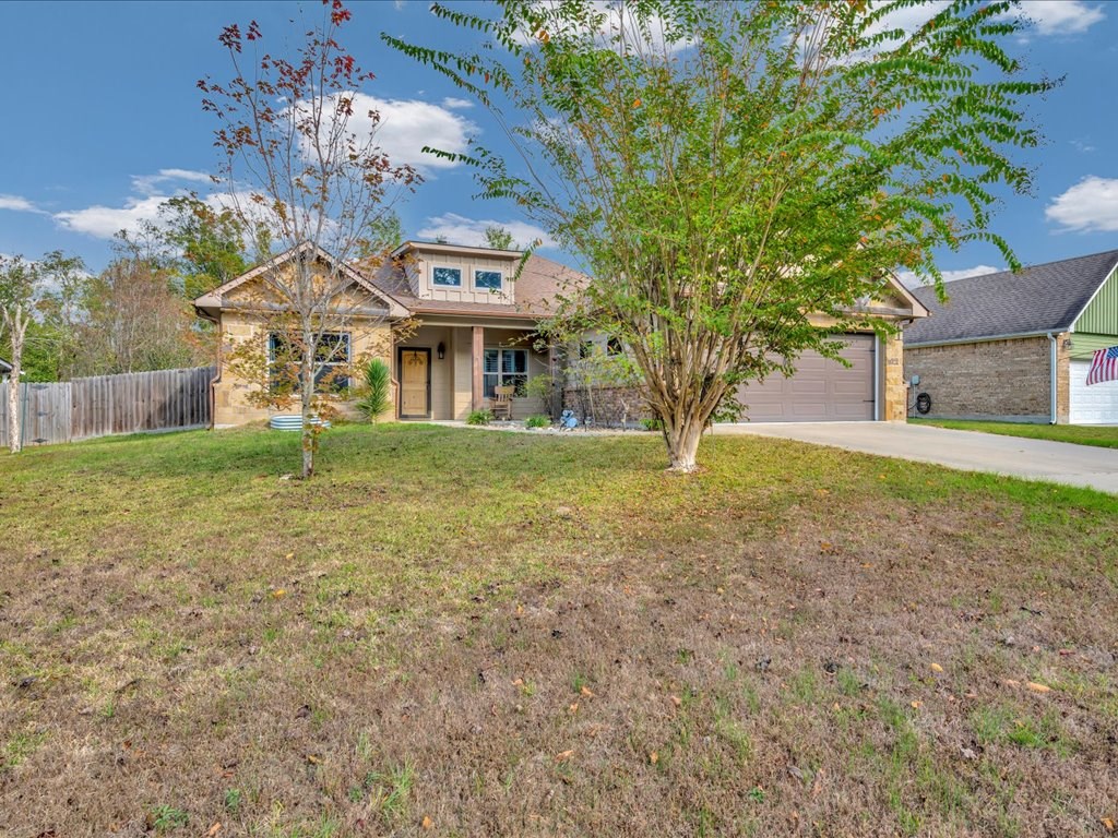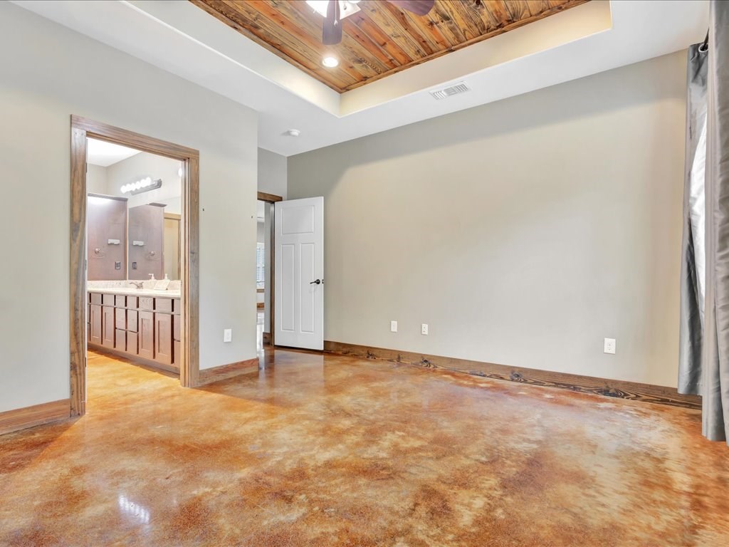 Move-In Ready Home in a Quaint, Quiet Subdivision! Nestled at the end of a peaceful dead-end street, this warm and charming home features an open-concept layout with beautiful stained concrete floors, vaulted wood ceilings, recessed lighting, and a striking stone wood-burning fireplace. The bright kitchen offers stainless steel appliances, granite countertops and the island perfect for meal prep and gathering. Retreat to the primary suite with a boxed ceiling, spa-inspired bathroom, double vanities, and two walk-in closets for ultimate comfort. Step outside to your own private backyard oasis—complete with an in-ground gunite sports pool and a spacious covered patio ideal for entertaining or unwinding. This one is calling you home.