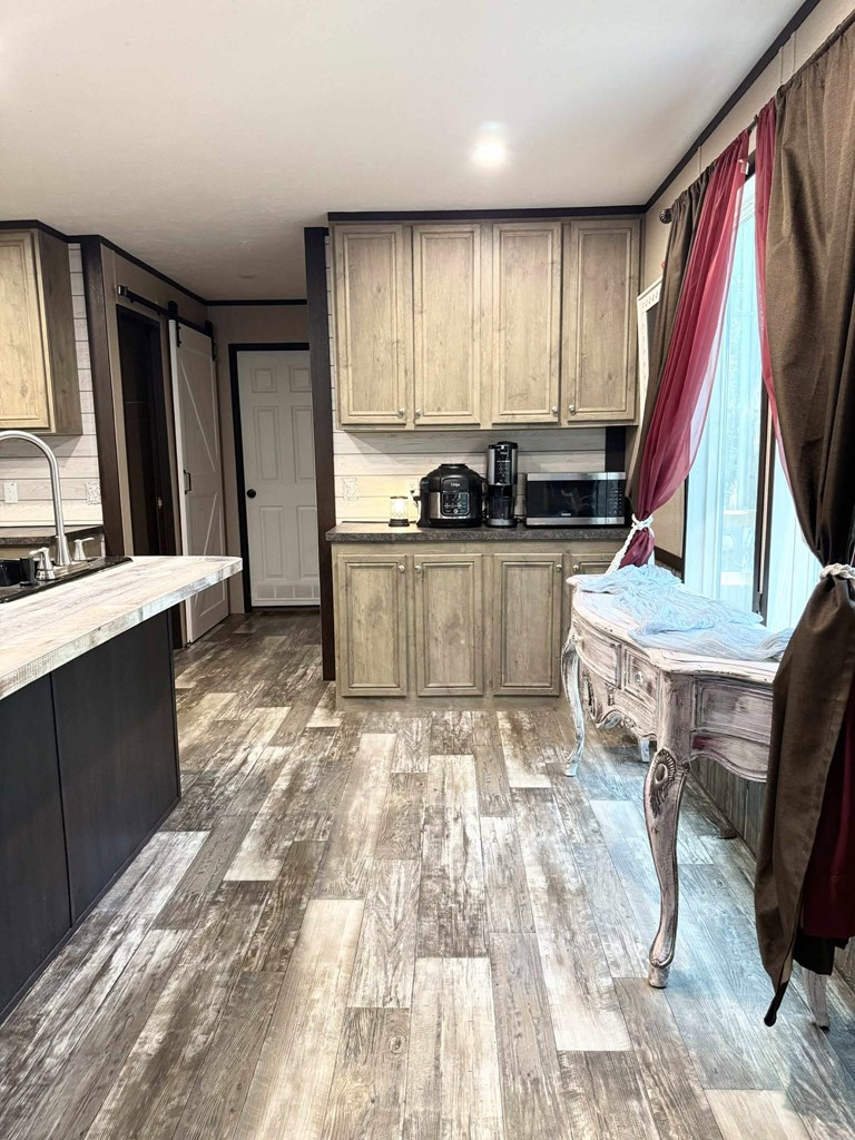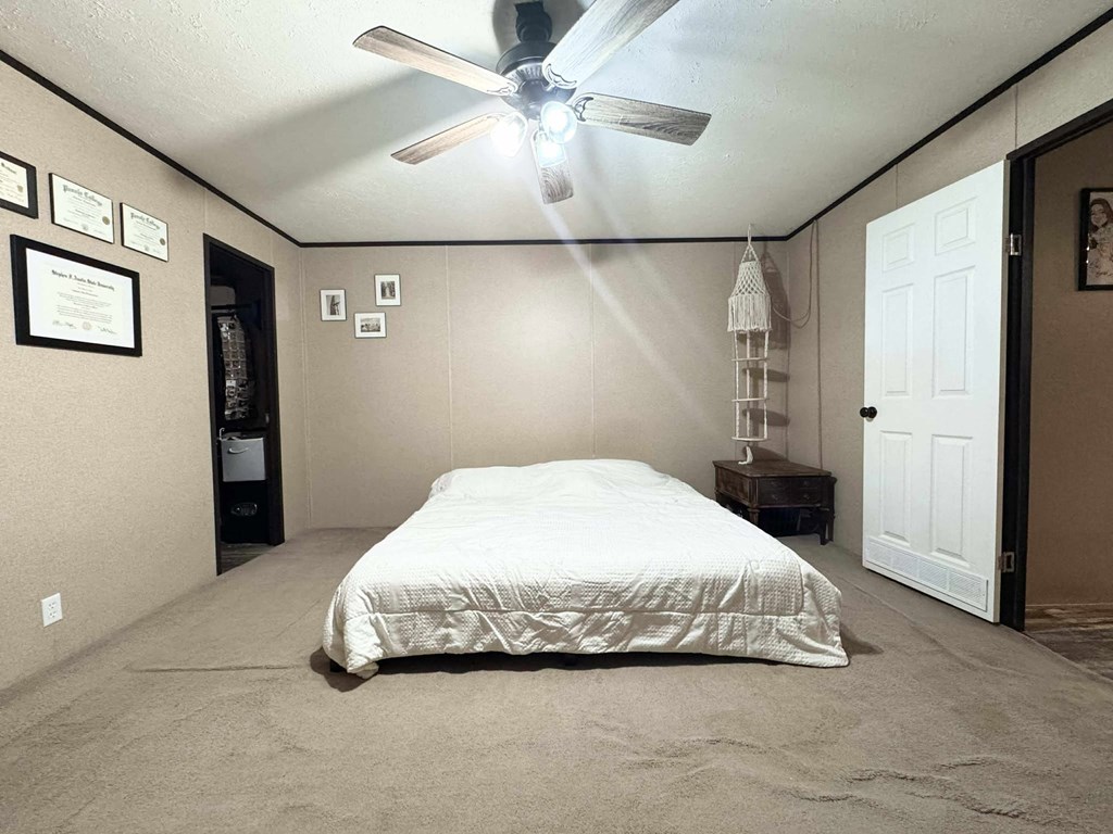 "Country Comfort Meets Modern Style" This 2019 mobile home sits on a spacious half-acre lot just 6 miles outside of town, offering the perfect blend of privacy and convenience. Tucked away on a quiet oil-top road and surrounded by trees, you'll love the peaceful setting and the sounds of nature as your backdrop. Step inside to find a bright and open layout with modernized colors that give the home a fresh, updated feel and look. The kitchen is dreamy, with an island making meal prepping a breeze and a pantry for extra storage and a coffee nook! Outside, you'll find everything you need for country living—an aerobic system for easy maintenance, a 16'x24' storage building for storage, and a fully fenced yard that's perfect for pets, gardening, or simply enjoying the great outdoors. If you're looking for a move-in ready spot with room to spread out and a touch of modern flair, this one checks all the boxes! Call your favorite Realtor to take a tour!