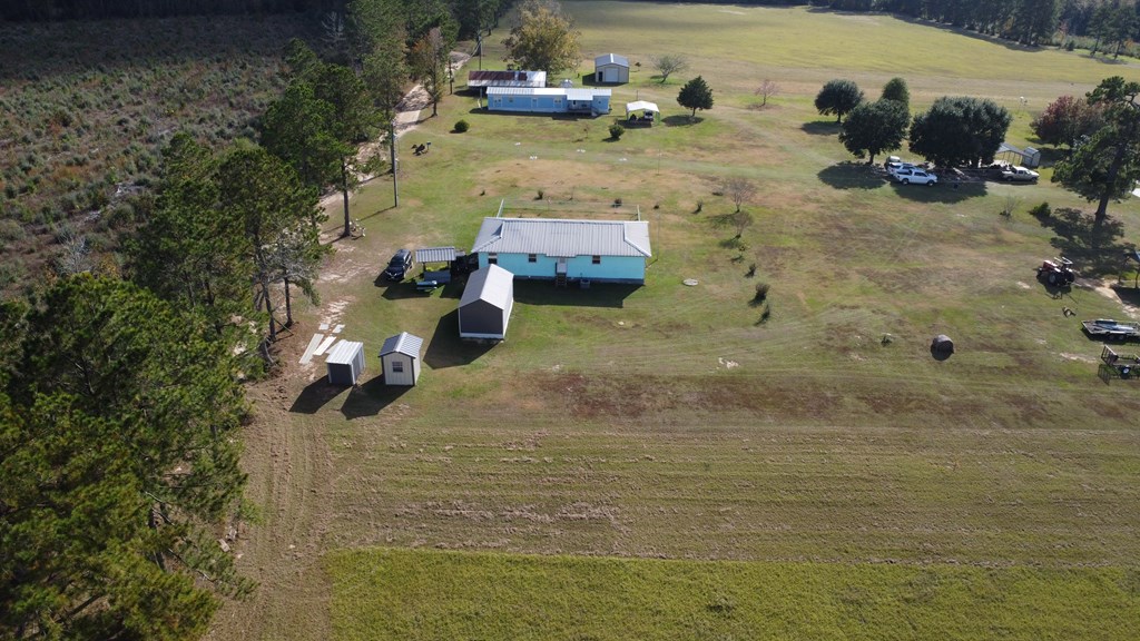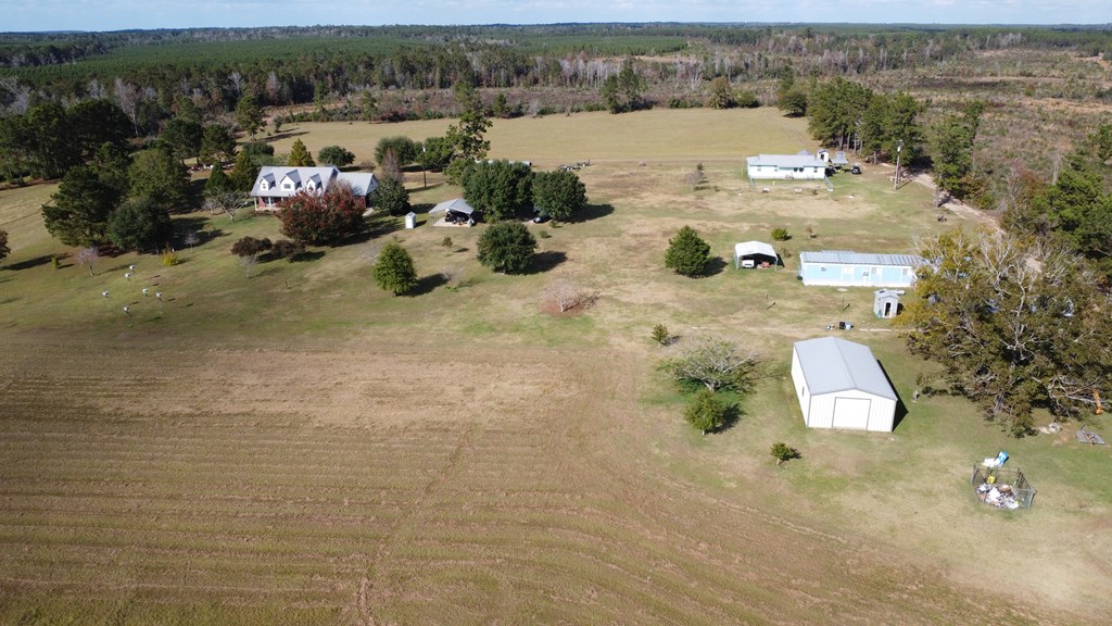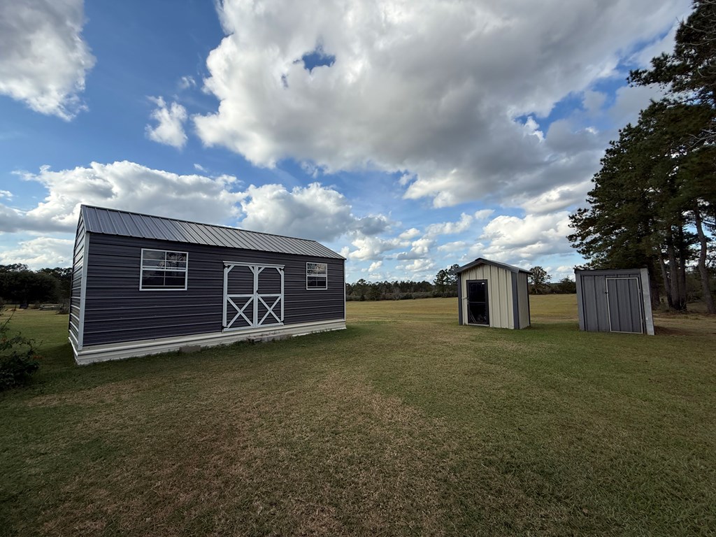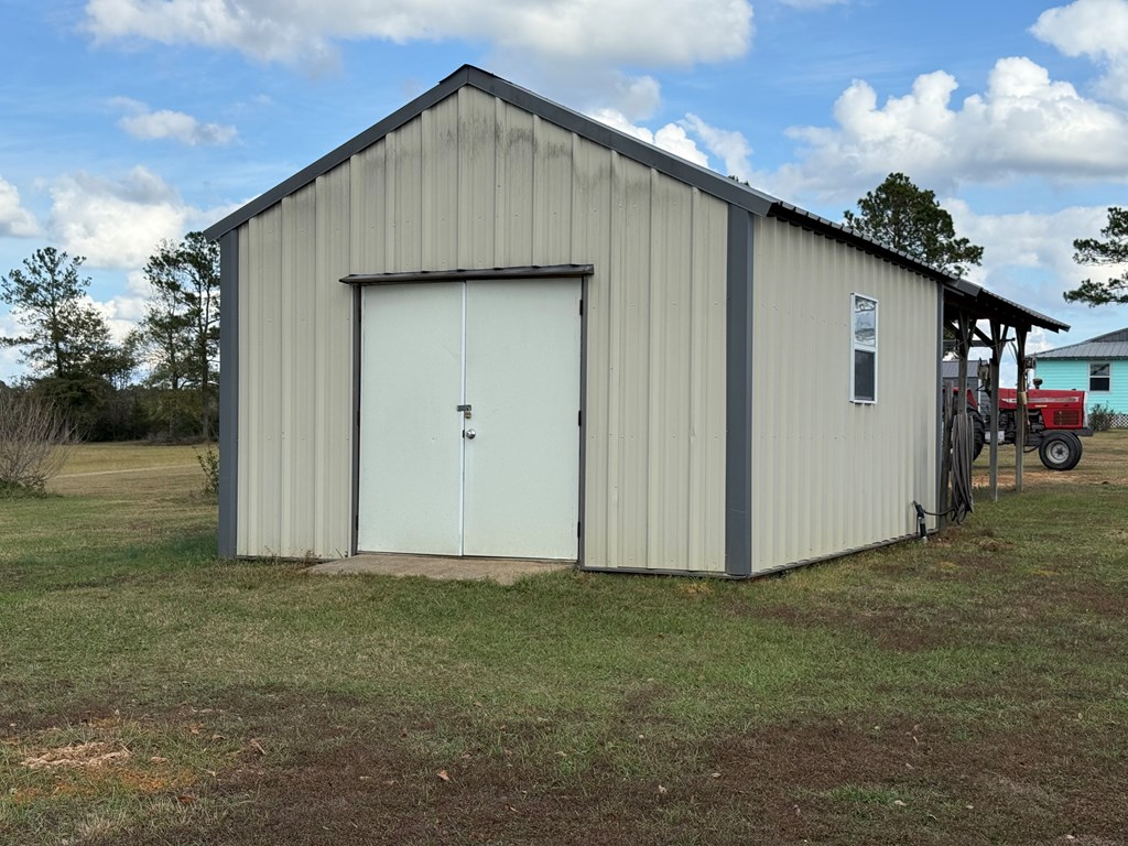 Exterior Features: Covered Patio, Covered Front Porch, Fenced Yard, Portable Outbuilding, Workshop, Metal Building, Outbuilding on Slab, Multiple Houses
