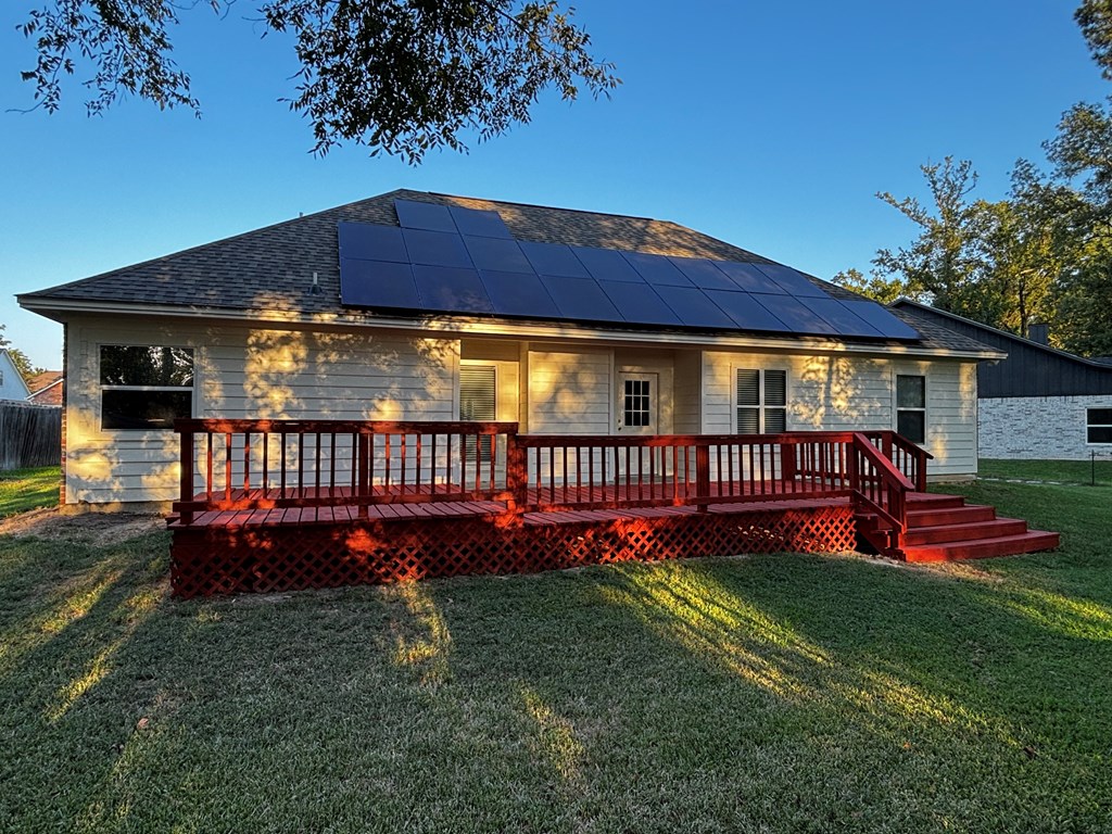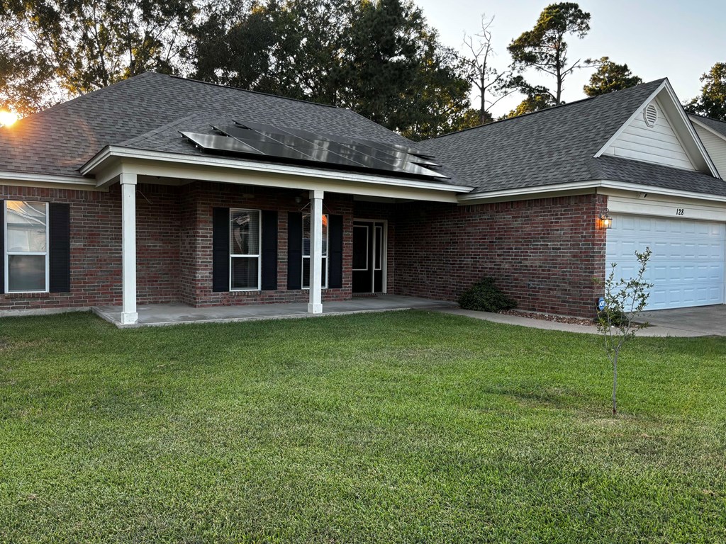 Charming 3 bed, 2 bath brick home in coveted Hudson ISD! Nestled at the end of a quiet cul-de-sac, this property blends comfort and efficiency. The inviting living room features a cozy gas log fireplace, while the kitchen and dining areas flow seamlessly for everyday living. Step outside to a spacious backyard with a deck, perfect for relaxing or entertaining. Modern upgrades provide lasting value and peace of mind, including a 14kW solar panel system with 42 kWh whole-home backup, a hybrid hot water heater (2024), and a new roof (2025). Don't miss this energy-smart home in a sought-after subdivision!
