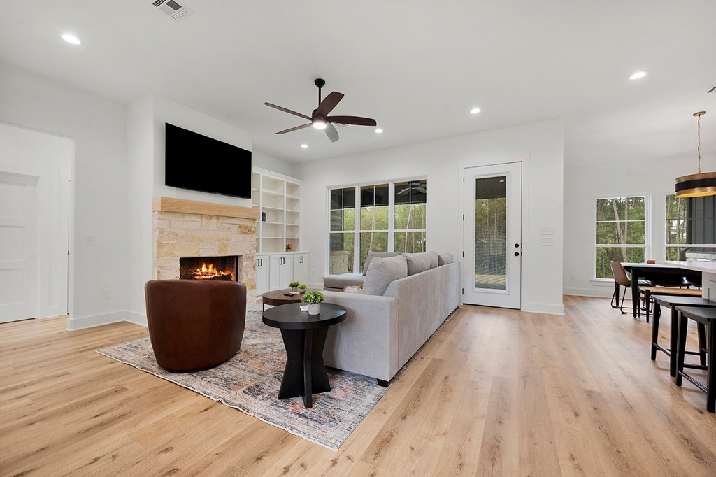 NEW CONSTRUCTION IN Rayburn Reserve ~ Featuring 5 bedrooms, 3 full baths, 2 car garage, beautiful stone fireplace and a covered patio overlooking the woods. The kitchen boasts a long island, soft close cabinets and a walk-in pantry. Entering the master suite your eyes are drawn to the tongue and groove wood ceiling. The master ensuite features a walk-in shower, double vanity, soaking tub and a spacious master closet that has access directly to the oversized laundry room. There are built-ins and storage throughout. Upstairs you will find a spacious area perfect for a bunk room, game room or whatever your heart desires complete with a full bath. Enjoy entertaining on the back patio while enjoy the trees and privacy that the large backyard has to offer. Rayburn Reserve has concrete streets, underground utilities and is located in the heart of Brookeland near the boat ramps, District 255 Marina, restaurants and Rayburn Resort golf club.