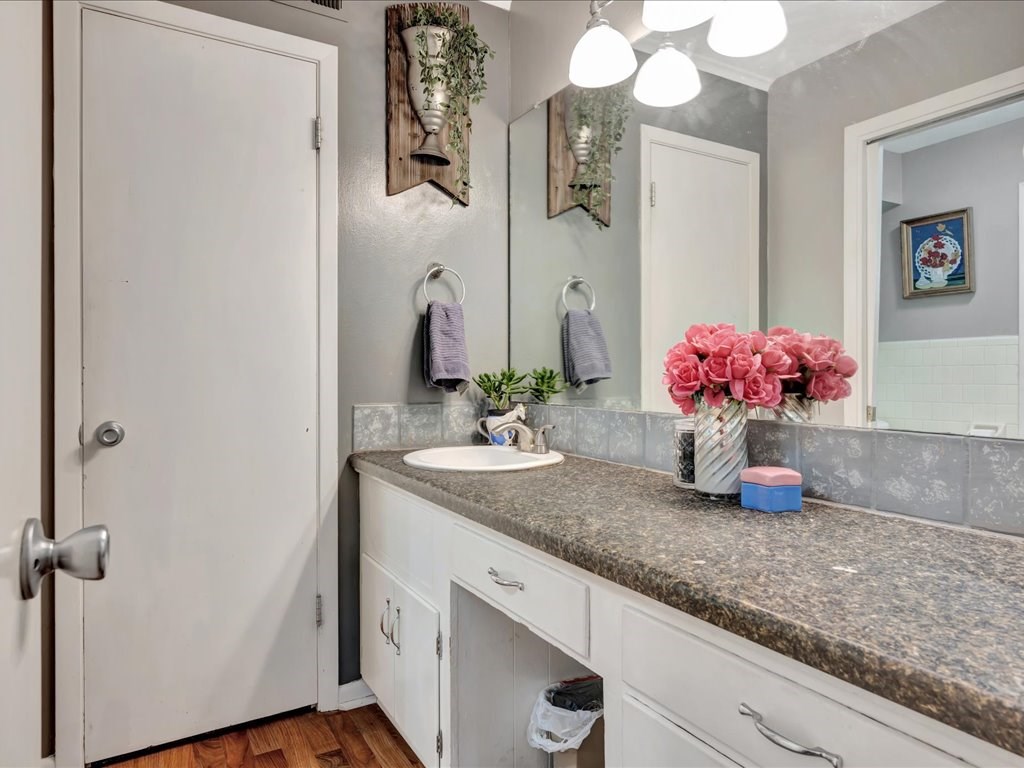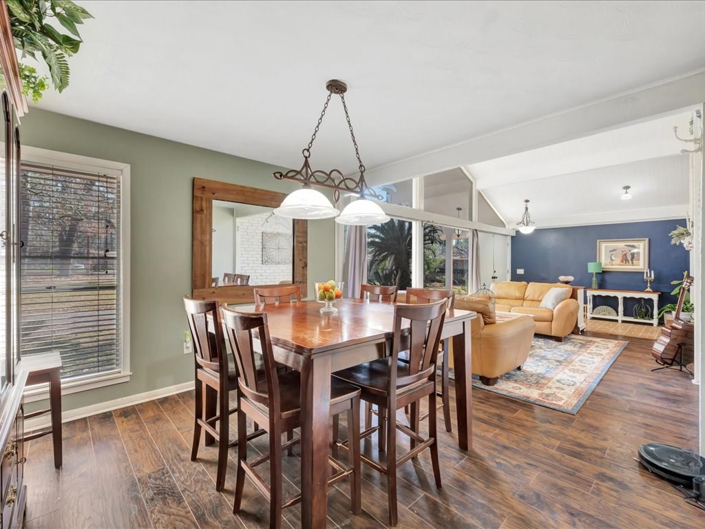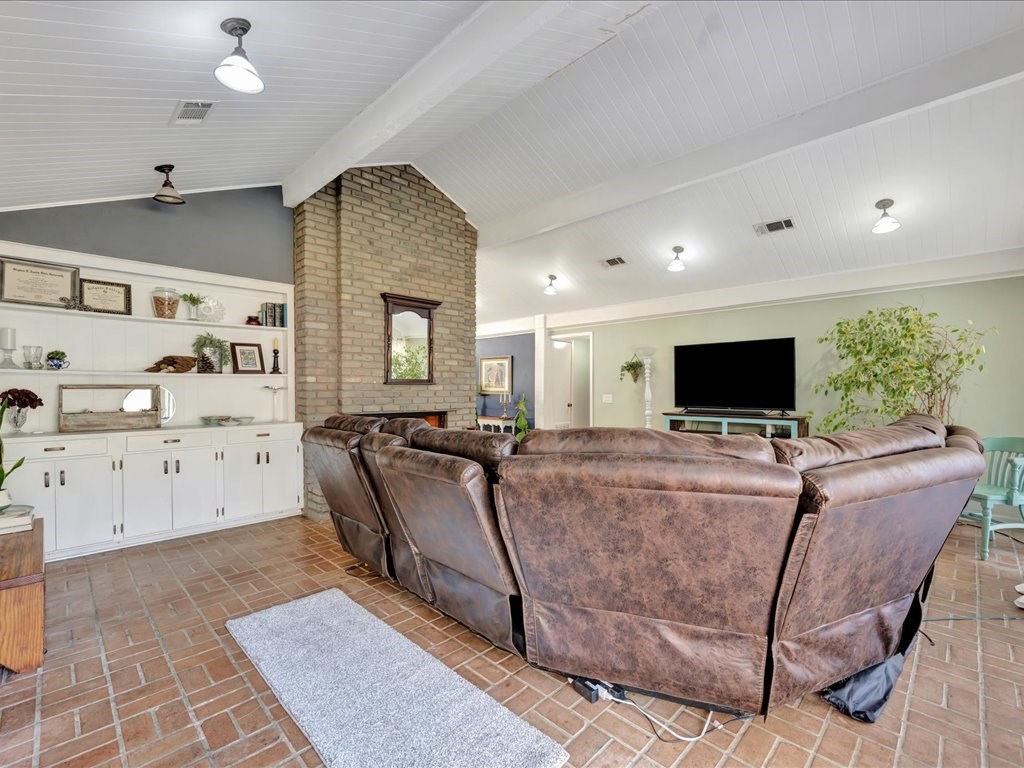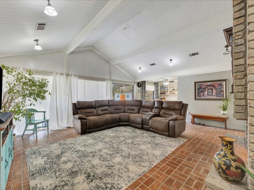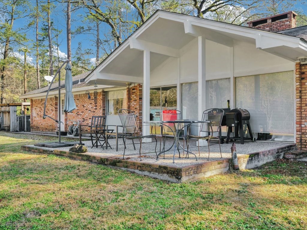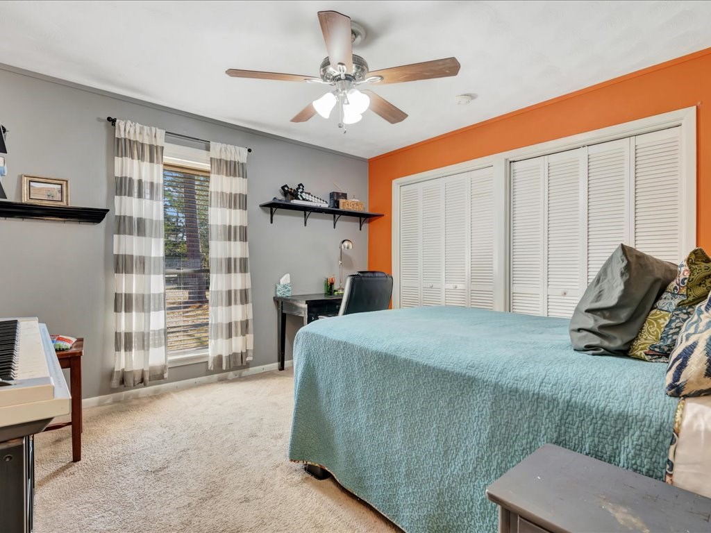 Nestled at the end of a quiet cul-de-sac, this spacious 4 bedroom/2 and a half bath home offers a circular driveway and exceptional privacy on a beautiful oversized fenced yard, backing to wooded acreage. Surrounded by a gorgeous variety of mature trees, the setting is serene and park-like. Built with true dimensional lumber, the home features three generous living areas anchored by a large fireplace that is set up with a gas unit and can easily be changed to wood-burning if desired. Natural light pours through oversized windows in the living spaces and bedrooms, highlighting the home's warmth and character. Recent updates include new flooring in the den and powder room, a newer water heater, and a newer AC/heat unit on the bedroom side of the home. The thoughtfully designed layout includes ample closets, primary suite enjoys its own private covered patio. Additional highlights include a formal dining room, large utility/laundry room, abundant built-ins. Come explore and make it yours!