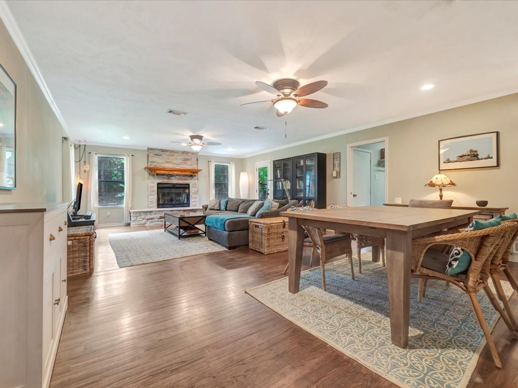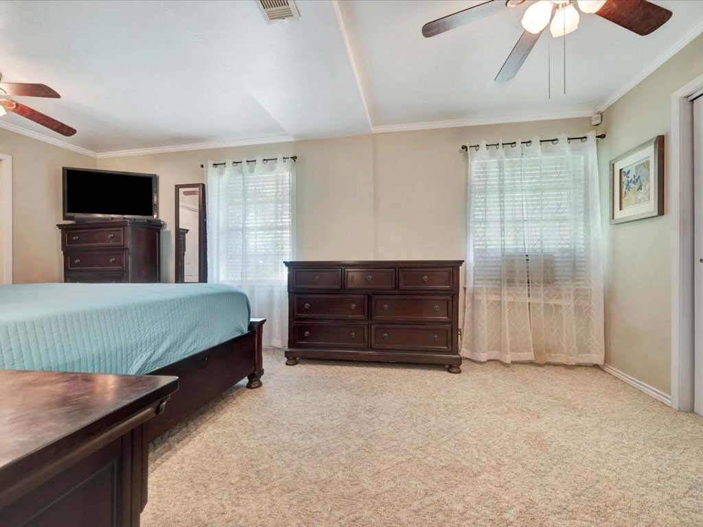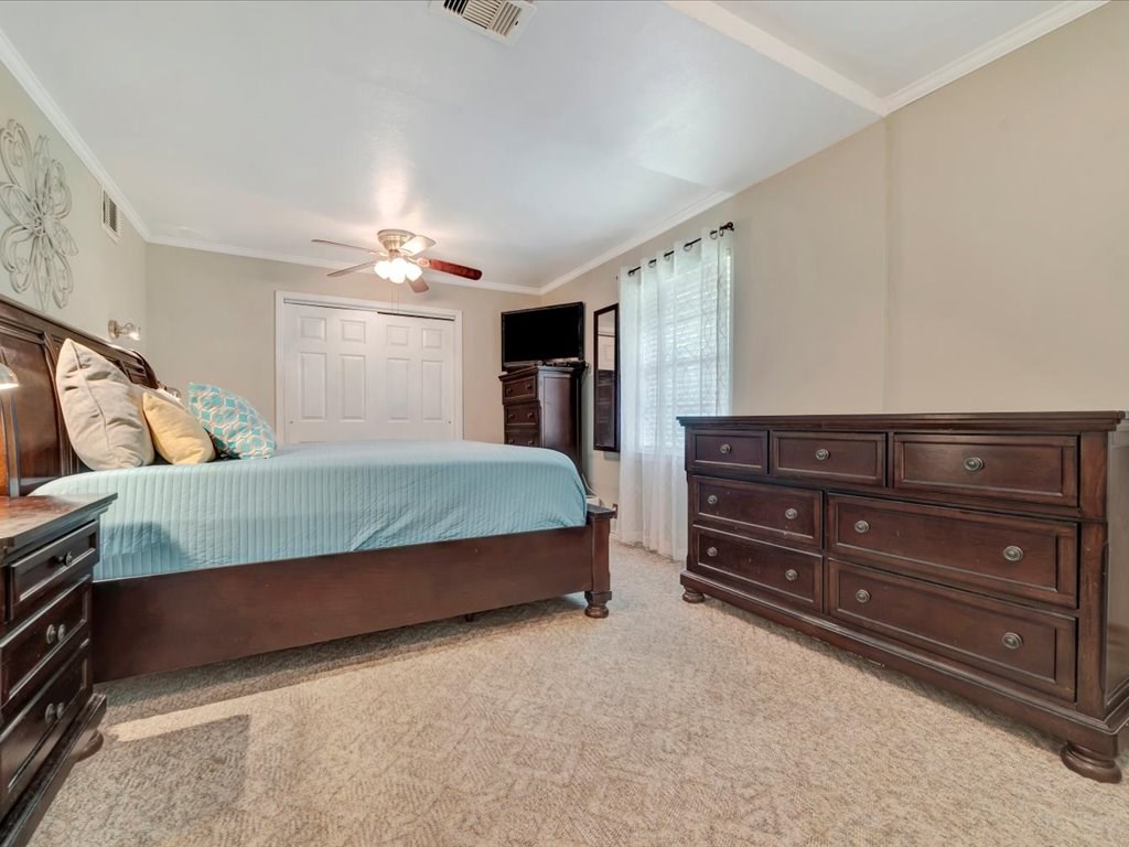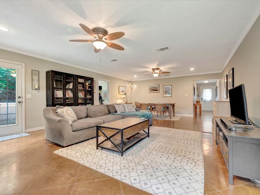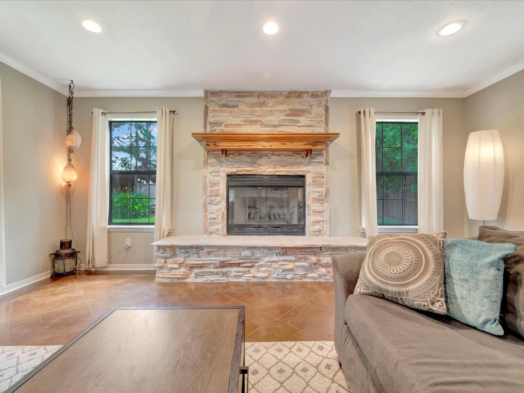 Immaculate 3 br 1.5 bath home with extra spacious great room at the end of the cul-de-sac in established neighborhood close to both downtown and restaurants, shops and the loop. The living room was enlarged and showcases the beautiful wood burning Austin stone fireplace. Large kitchen with granite countertops and utility room. Two storage units in back yard and two driveways; one behind the fence for motor home hook up. This one just feels like home!