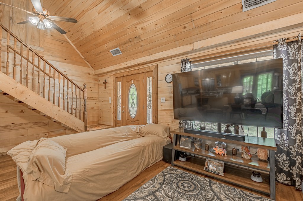 : Lake living made easy!! Just minutes from the great fishing, floating and boating fun of Lake Nacogdoches sits this 2br/2bth log home on 2 acres. The private boat ramp makes getting into the water easy. Step inside the home and feel the quality construction. Step outside with plenty of room to spread out and a 40x25 shop for any and all special projects. Feel safe year round with a whole house generator for those stormy nights. This home is the complete package. Call a Realtor and check it out. Seller will consider all reasonable offers!
