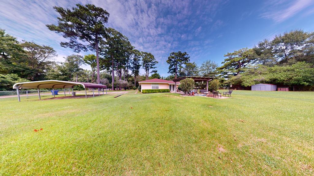 Welcome to this beautiful 3-bedroom, 2-bath home with Generac Generator, nestled on approximately 1 acre in the peaceful Curtis community. With 1,978 square feet of living space, the home features a formal dining room, an updated kitchen with a breakfast bar, two dining areas, making it ideal for family gatherings and entertaining. Enjoy the warmth of hardwood floors throughout, a formal living room, and a separate spacious den for relaxation or entertainment. The oversized laundry room includes ample space for a freezer and additional storage, plus a butler's pantry for added convenience and the 2-car attached garage provides easy access to these areas. Step outside to a covered patio, perfect for enjoying the serene surroundings, or gather around the fire pit with family and friends. The beautifully landscaped yard is adorned with gardenias, camellias, and azaleas, offering year-round color and fragrance. The entire property is fenced, storage building included and Generac generator.
