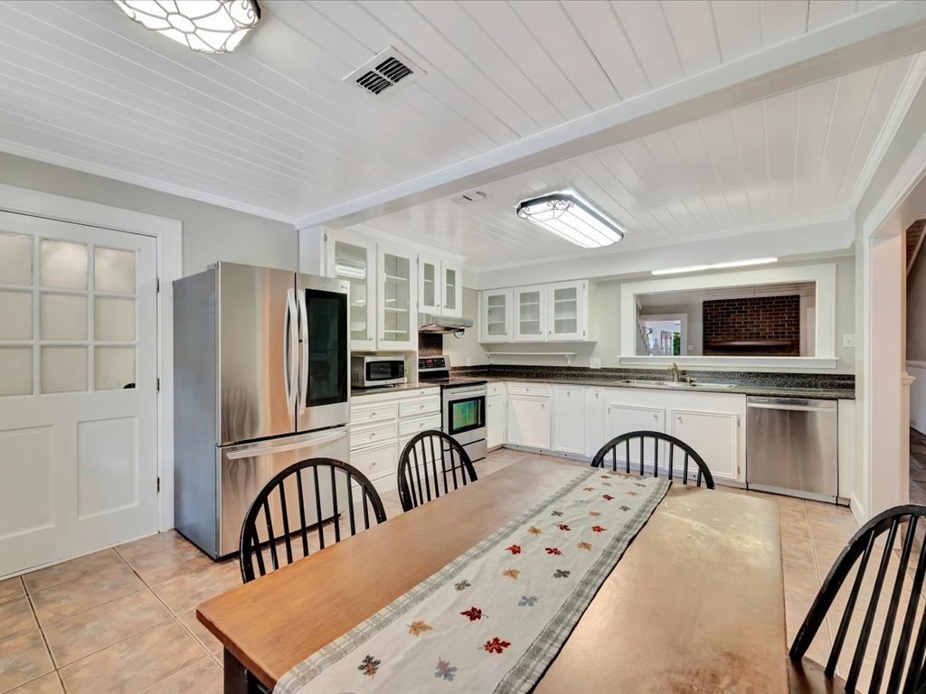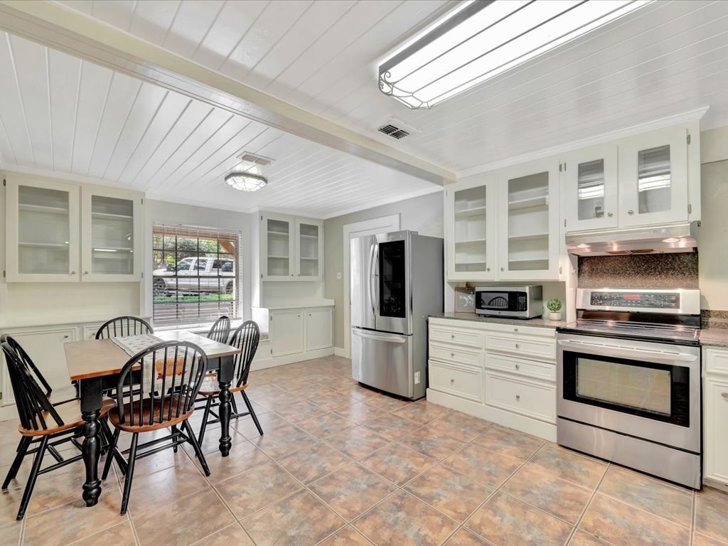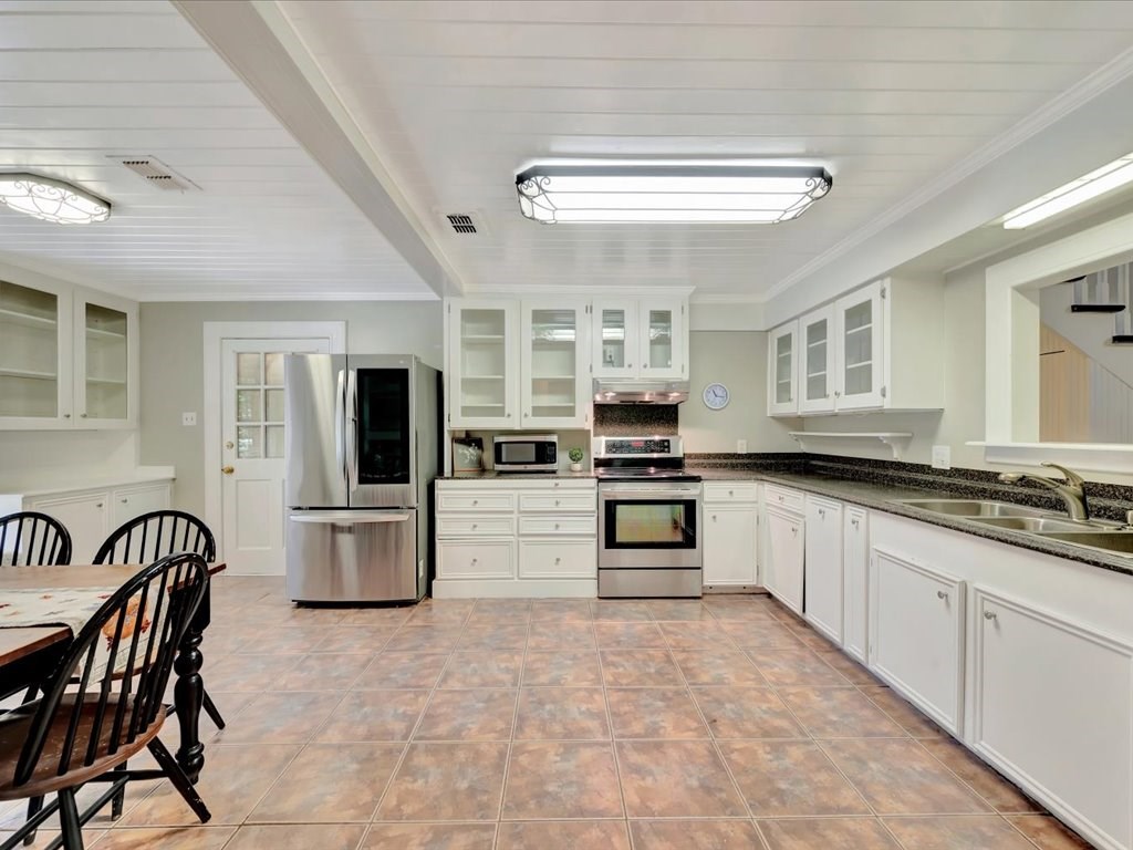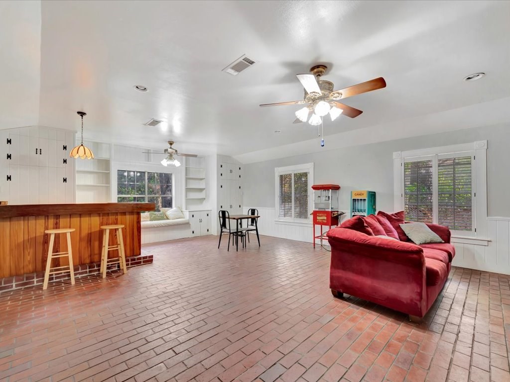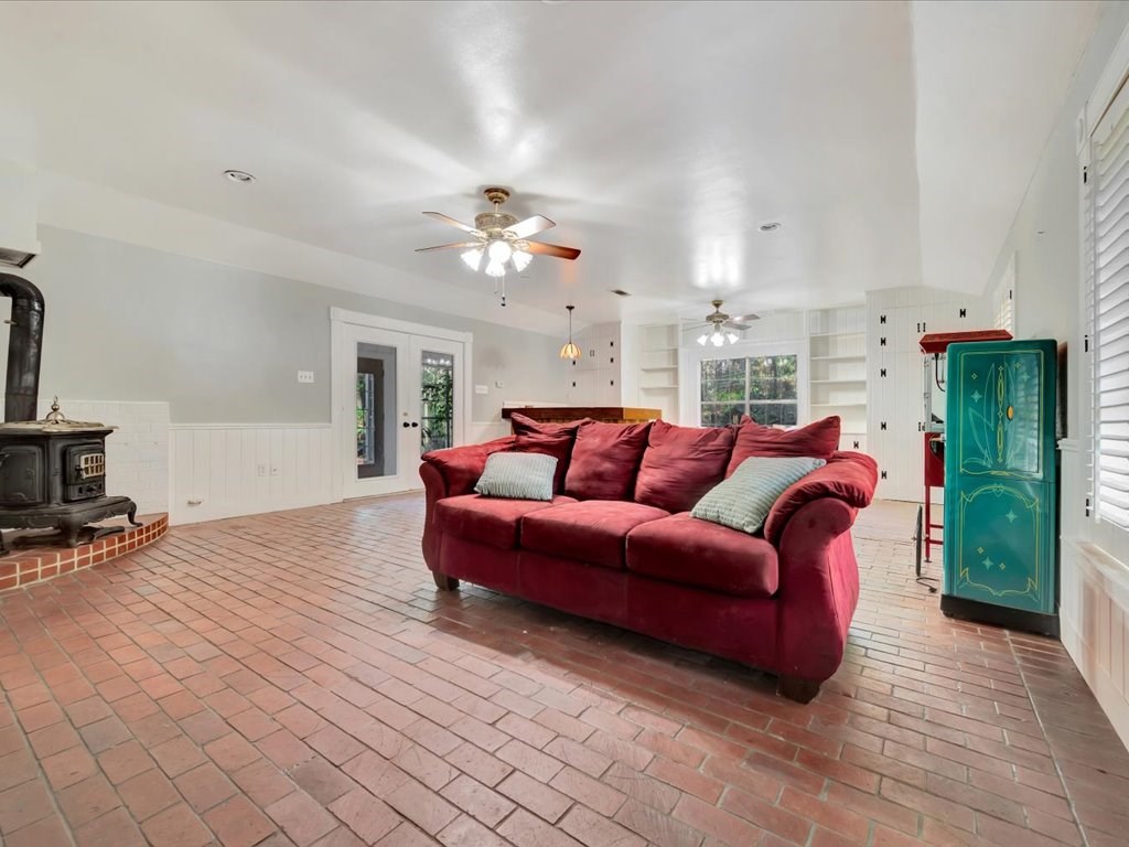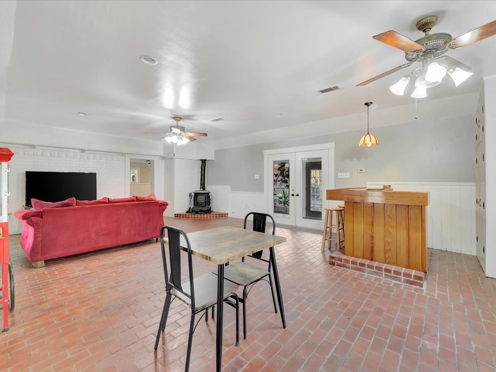 Nestled on a quiet cul-de-sac in northeast Nacogdoches, this charming 2,797 sq. ft. ranch-style cottage blends timeless appeal with multiple living options. The four-bedroom, three-bath layout centers around a front facing kitchen with eat in breakfast area that welcomes the morning sun. The home's activities center around a welcoming living room with sloped ceilings and a wood burning fireplace as well as a cozy bonus game room with a built-in bar and wood-burning stove, plus a large sunroom/atrium that walks out to a brick-paved patio. Outside, a gardener's dream awaits with a private brick patio, a deck, a storage or project shed, and a winding path to a tinker-friendly carport and a spacious back area—perfect for entertaining, workshops, or future expansion. Convenient to schools, shopping, and parks, this home offers warm charm, versatile living spaces, and plenty of outdoor lifestyle.