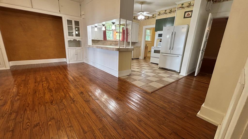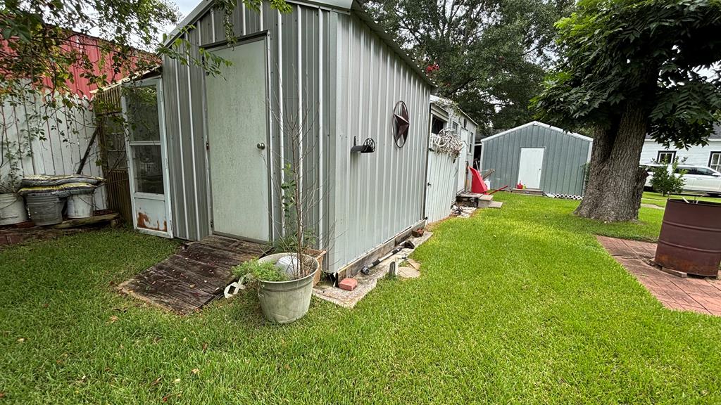 Step into this inviting cottage that blends vintage charm with thoughtful updates. The oversized kitchen is perfect for hosting family and friends, featuring ample counter space and bar seating for casual meals. You'll love the generously sized bedrooms, each with roomy closets, and a beautifully spacious bathroom complete with a classic clawfoot tub. Original hardwood floors preserve the home's historic feel, while modern conveniences like a large laundry room and a convenient half bath near the back patio add function to the charm. Outside, the covered patio offers the ideal space to unwind or entertain. The backyard is a dream for hobbyists, with multiple outbuildings and sheds for workshops, gardening, crafts, or extra storage. And with a Generac generator included, you'll have peace of mind no matter the weather. All this, just a short walk from local shops, restaurants, parks, and churches — and only 15 minutes to beautiful Lake Sam Rayburn and its marina. Priced to sell!