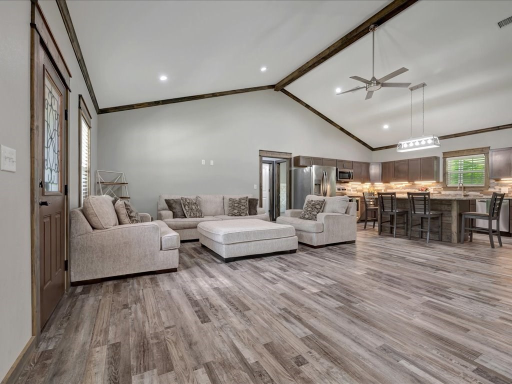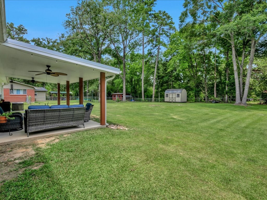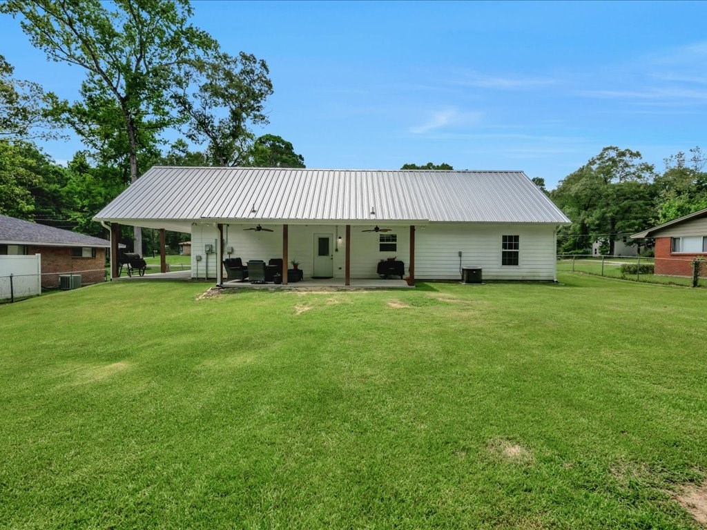 Welcome to this charming 3-bedroom, 2-bath home nestled in a peaceful Lufkin neighborhood. Built in 2022, this like-new home offers 1,740 sq. ft. of well-designed living space with a spacious open-concept floor plan, perfect for modern living. The kitchen features granite countertops, stainless steel appliances, and a large island that opens to the living and dining area, ideal for entertaining. The primary suite includes a walk-in shower and double vanities, while cathedral ceilings and abundant natural light add to the home's inviting feel. Situated on a generous 0.45-acre lot, this property includes a covered front and back porch, fenced backyard, storage building, and attached carport. Energy-efficient features, double-pane windows, and a great layout make this home move-in ready. Call your favorite agent for a personal showing today!!