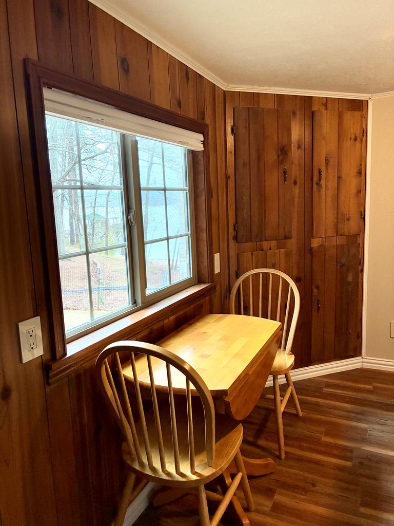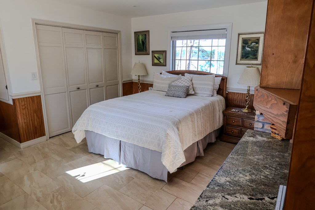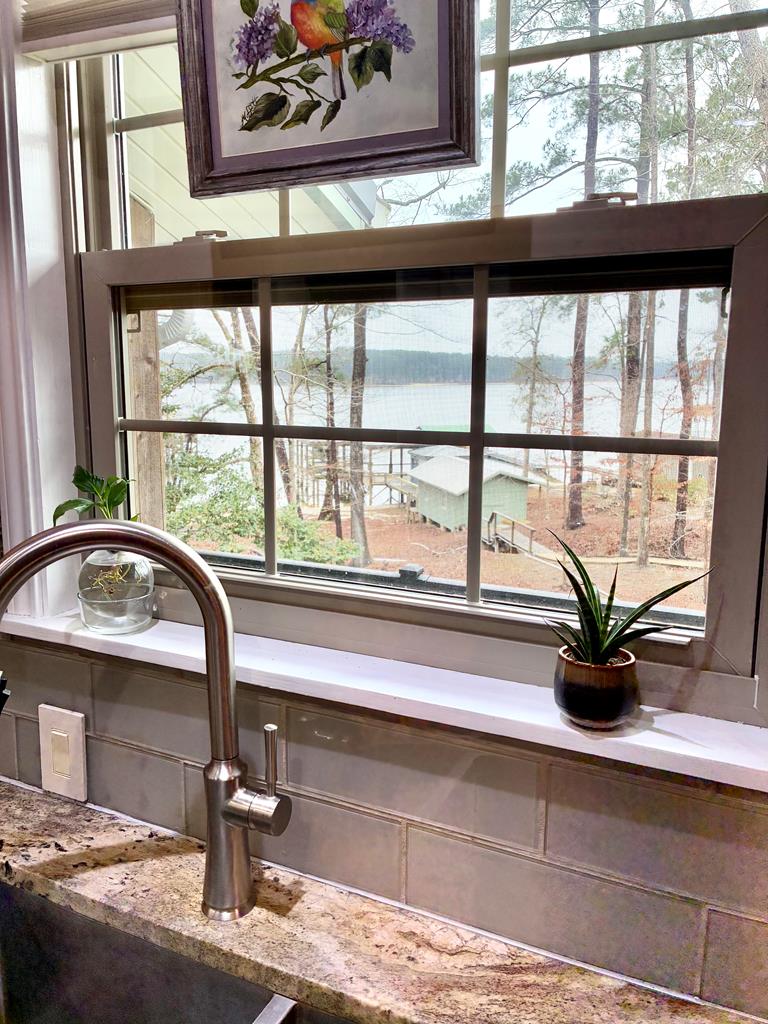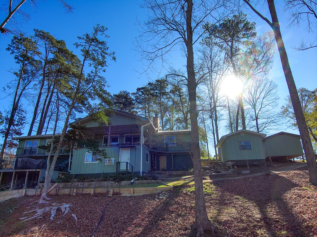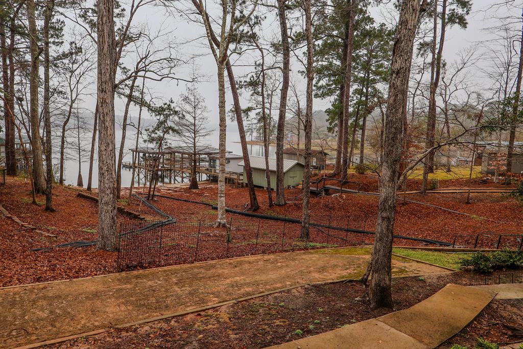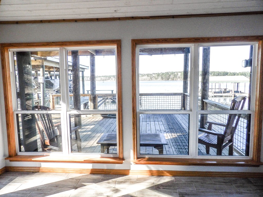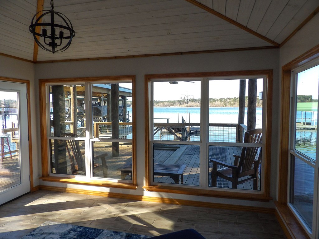 A refined waterfront retreat showcasing custom materials throughout, this home blends natural elegance w/ elevated comfort. The heart of the residence is an open kitchen/family room, anchored by a wood-burning firebox that brings warmth & ambiance to the space. The kitchen's birch cabinetry pairs beautifully w/ the home's antique beech wood floors creating a rich, organic aesthetic. The primary suite offers a serene escape w/ separate closets & a generous walk-in. A spa-inspired bath featuring a luxurious soaking tub & tile shower. Breathtaking lake views extend from most rooms. One of the property's most exceptional features is the meditation room suspended over the water—a tranquil sanctuary unlike anything else. Just outside, a covered 2025 party deck provides an impressive setting for entertaining, while enjoying the peaceful lake backdrop. A rare combination of craftsmanship, serenity & luxurious lakeside living—this property is designed to impress!