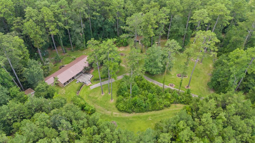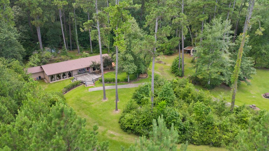Private, Private, Private, secluded custom home on 4.48 + acres. 3/3 home 'tucked" in the woods. Enjoy the peaceful ambience of living in the country. Home boasts open floor plan, kitchen with gas stove, lots of storage and large island. Living with vaulted beamed ceilings and fireplace, breakfast nook with built-in, oversized main bedroom with den and wet bar, bath with double vanity, tub and separate shower. 2nd bedroom has its own bath. Beautiful grounds and outbuildings.