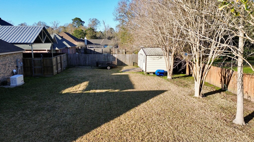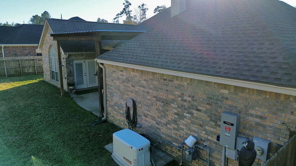 Gorgeous open living concept w/ soaring ceilings & 4 spacious bedrooms. Roomy living area features an upgraded gas fireplace (can convert back to wood). Welcoming foyer w/ nearby half bath is perfect for guests & leads to a formal dining area. Bright kitchen offers a breakfast bar, space for a kitchen table, bay window, room for a custom coffee bar & a large pantry. Laundry room includes cabinets for storage. Beautiful 8' cypress fenced backyard w/ a 10x20 storage building. Covered patio w/ pergola & upgraded ceiling fans for entertaining. Master Wing is a private retreat w/ French doors opening to the back porch. Tons of updates including whole-home generator, new architectural shingled roof in 2023, high-efficiency on-demand water heater & brand-new HVAC w/ heat pump. Huge lighted 25x48 covered parking w/ double gate access to backyard. Oversized garage offers plenty of storage & project space. This Home has Never Flooded! Elegant exterior lighting adds great curb appeal!