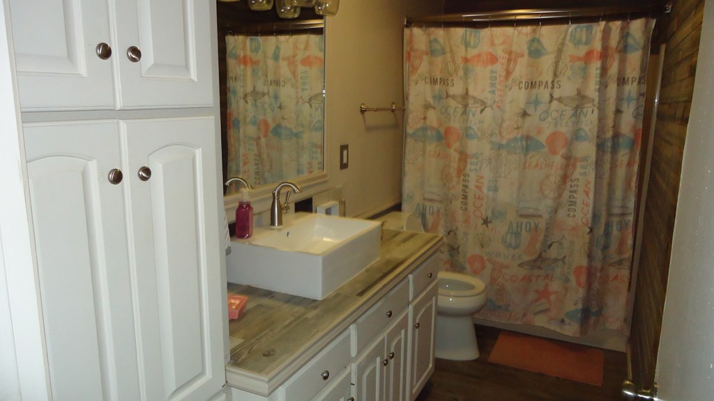 This beautiful brick home is setting on 3 landscaped corner lots, across the street from Toledo Bend Lake, and only two blocks from the private boat ramp. The home has a concrete slab, with a covered front and back porches the total length of the home. A detached 2 car garage with a concrete drive. A new wooden privacy fence in the back yard with a new above ground pool. The large living room has vaulted wood ceiling and a wood burning stove. The living room,dining and kitchen all flows together. The large master bedroom has a private bathroom and walk-in closet. The second bedroom and bathroom is across the hall. The home comes complete with central air n heat, also has a aerobic sepic system. The home is located in lovely Rebel Ridge Subdivision across the lake from Cypress Bend Golf Resort. The home has been recently renovated and comes with top of the line appliances ALL THIS priced @ $269.900