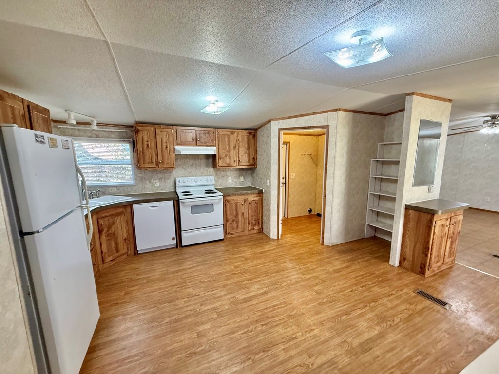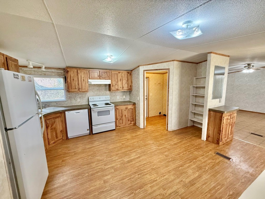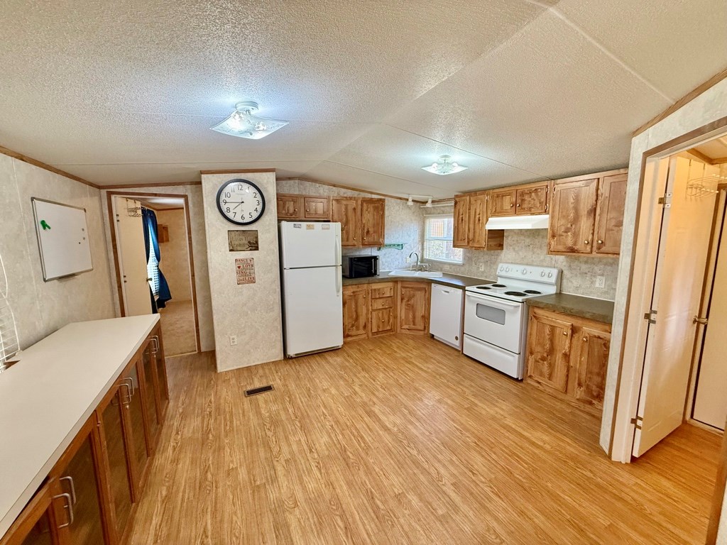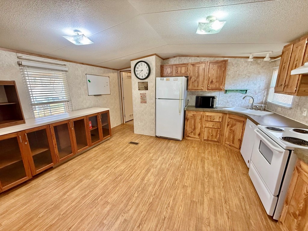 Check out this 2006 2/2 manufactured home that has been very well taken care of. There ius a nice insulated covered front porch as well. This sale also includes a 2 car carport, a 12x20 storage building as well as a smaller 6x10 storage building. The manufactured home is move in ready or can be moved. The home and other items currently sit on a lease lot. The buyer can purchase and keep it there and continue to rent ($350 covers the land, water, sewer, and garbage pick up) or you can move them all to another location.