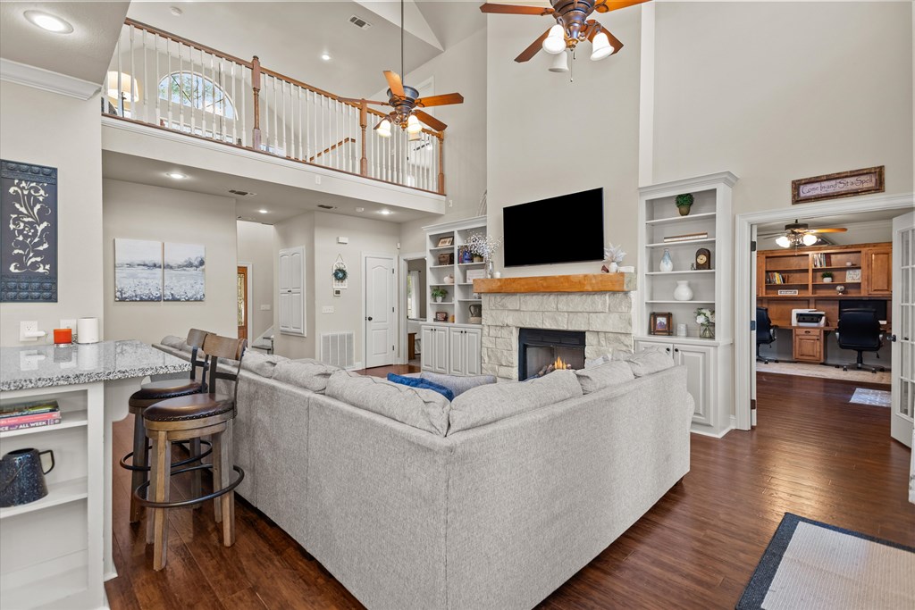 Ceiling Fan(s), Alarm System, Breakfast Bar, Island Kitchen, Gas Fireplace, Master - Lower Level, Master - Uppr Level, Pantry, Raised Ceiling