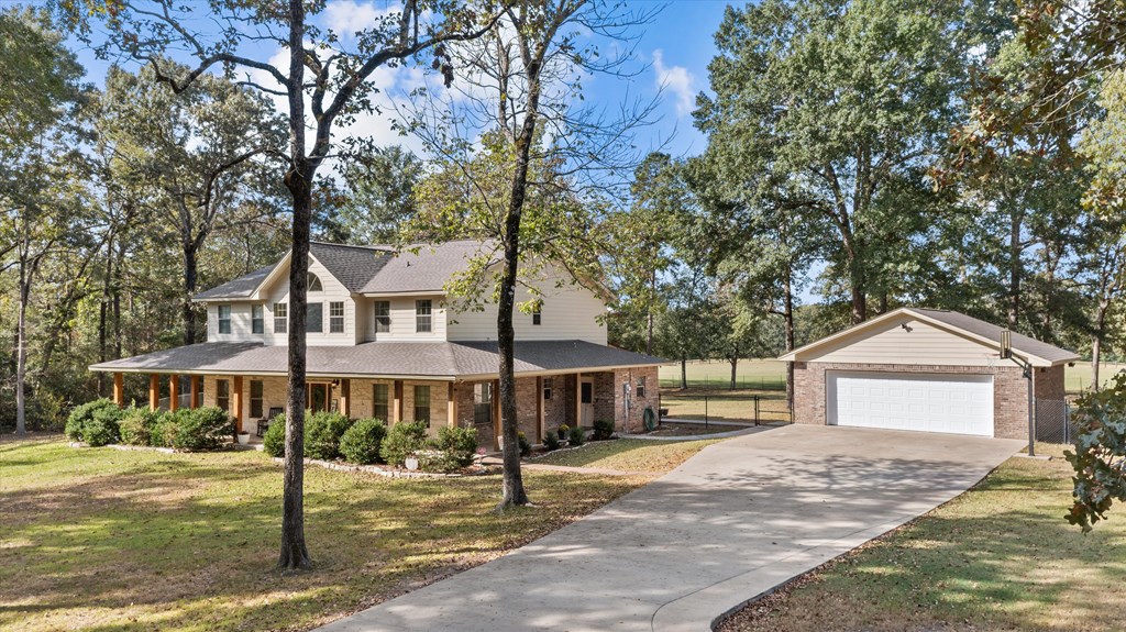 Set in the heart of Hudson ISD, this home perfectly blends East Texas charm with room to grow and make memories. Featuring 4 spacious bedrooms, 3.5 baths, and a dedicated office, there's plenty of space for work, play, and everything in between. Designed with comfort and flexibility in mind, this two-story home includes an ensuite bedroom upstairs and another downstairs, ideal for guests or a private retreat. You'll love spending time outdoors on the welcoming front porch or relaxing in the back covered living area. Situated on 1.46 acres, this property offers the privacy and space you've been looking for without sacrificing convenience. With a new roof and plenty of personality, this is no cookie-cutter home. It's full of warmth, character, and ready for its next story to begin