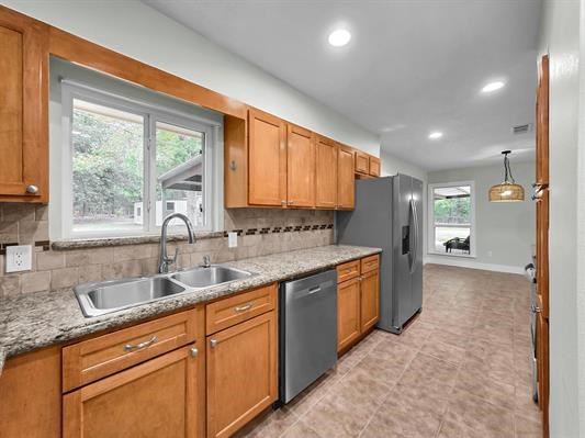 Just north of town, you'll find this newly renovated 3 bedroom, 2 bath brick home on 2 acres of land! Enter the home through a beautiful archway. A semi-open concept allows for easy entertaining without compromising kitchen storage. Updated wiring, new plumbing, windows, ac, hot water heater, fixtures, and flooring are just a few new aspects the home offers. This property also provides a large back patio and multiple buildings for covered parking and storage. Come live in the country without sacrificing in-town amenities or a short drive to the lake! *Additional concrete is being added off the garage connecting a front walkway, and off the primary suite.