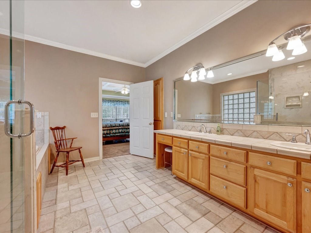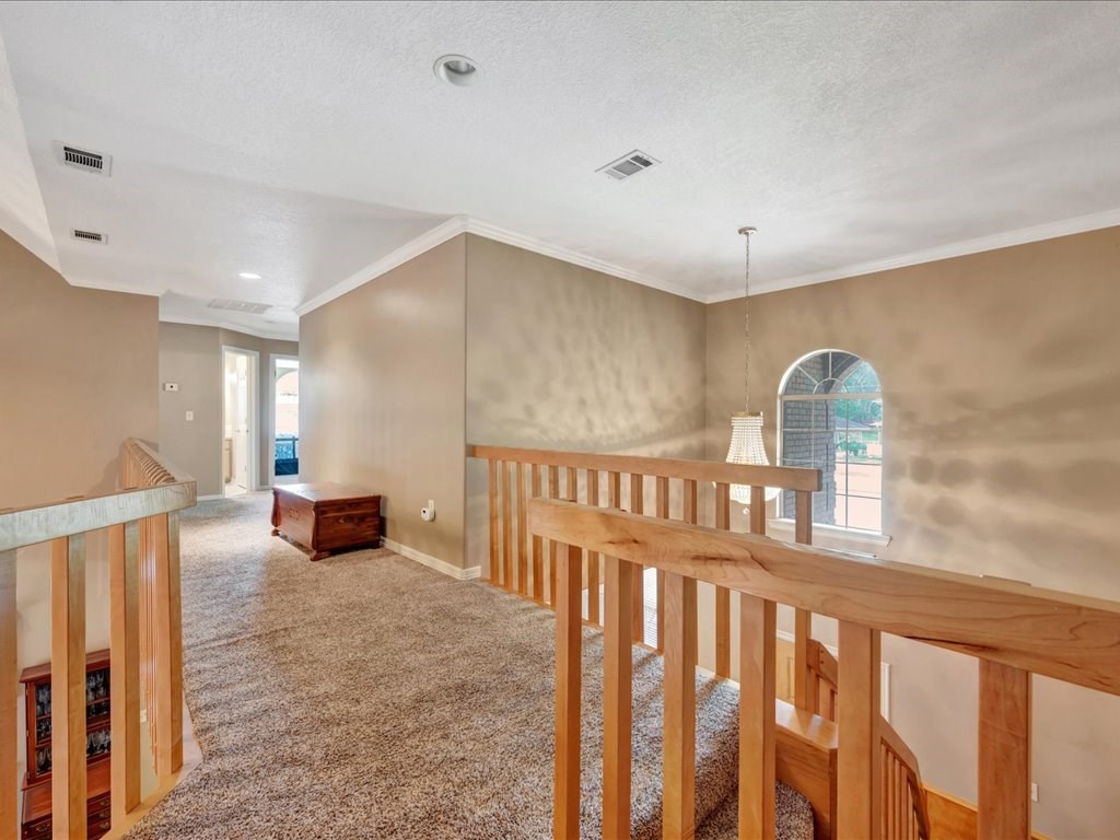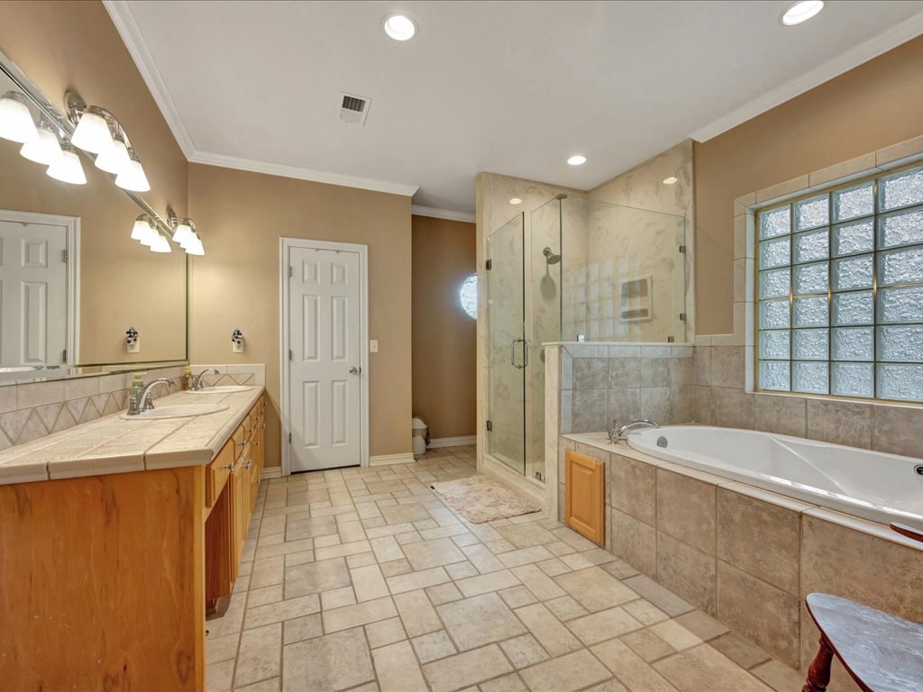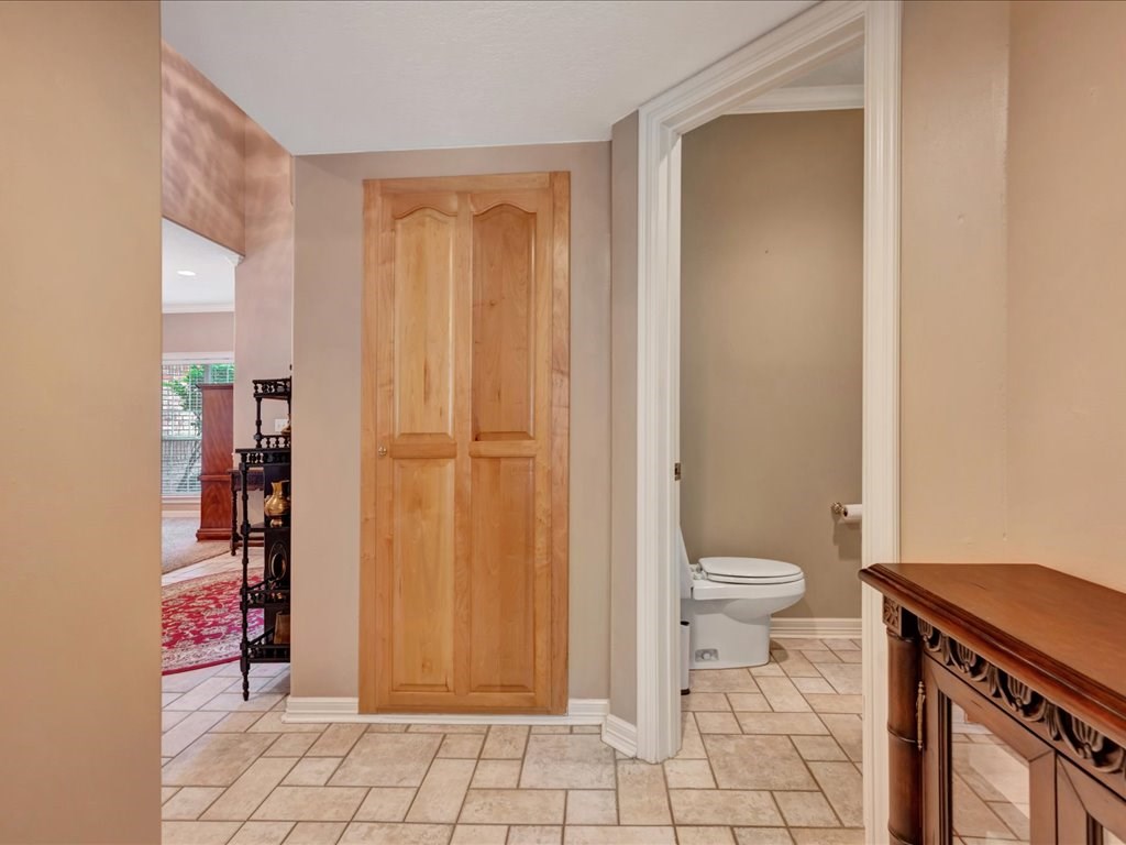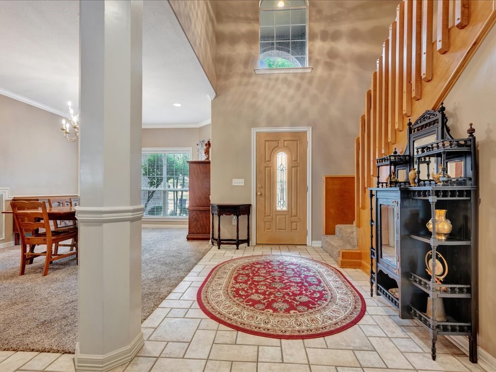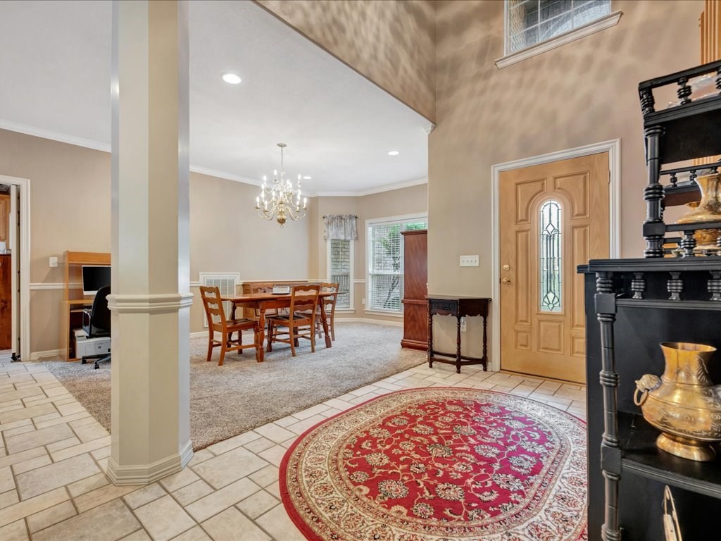 Discover the perfect blend of elegance and function in this beautiful Brookhollow home. Boasting excellent curb appeal, this two-story residence welcomes you with tall ceilings and a cozy fireplace with built-ins. A key feature is the secluded primary suite, conveniently located on the main floor for ultimate privacy. The heart of the home is the island kitchen, flanked by a butler's pantry and a sunny breakfast area, and complemented by a formal dining room. Upstairs, three additional bedrooms offer ample space for family or guests. Step outside to your private backyard oasis, where a covered patio overlooks the sparkling inground pool and fully fenced yard—an ideal setting for relaxation and entertaining. This home masterfully combines traditional charm with modern livability.