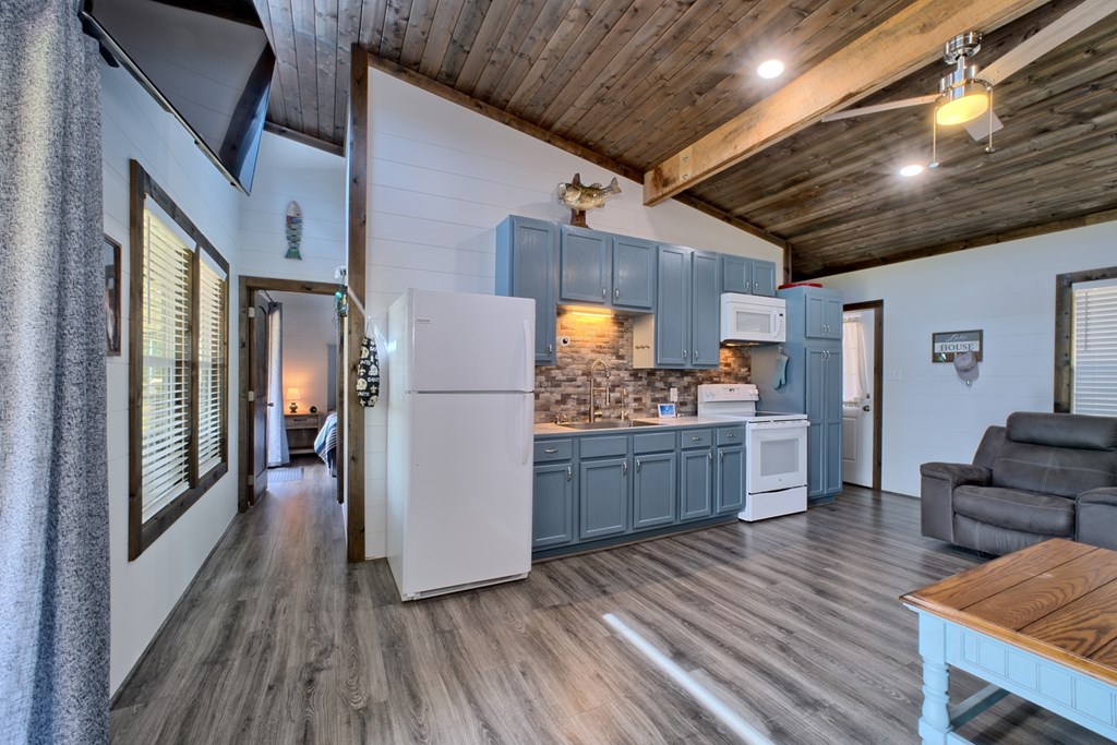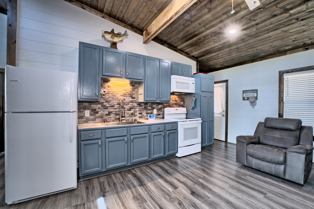 This beautiful and efficiently built small home located right on the water. This clean modernized residence maximizes every square foot of space, offering smart design and contemporary finishes throughout. Seamless indoor-outdoor living with a spacious engineered wood back porch, complete with stylish railing and an outdoor kitchen area- perfect for entertaining or relaxing by the water. There is a deck at the waters edge, offering stunning views and direct access to waterfront lifestyle. This home offers lots of storage. It is clean and move in ready. Furniture included!