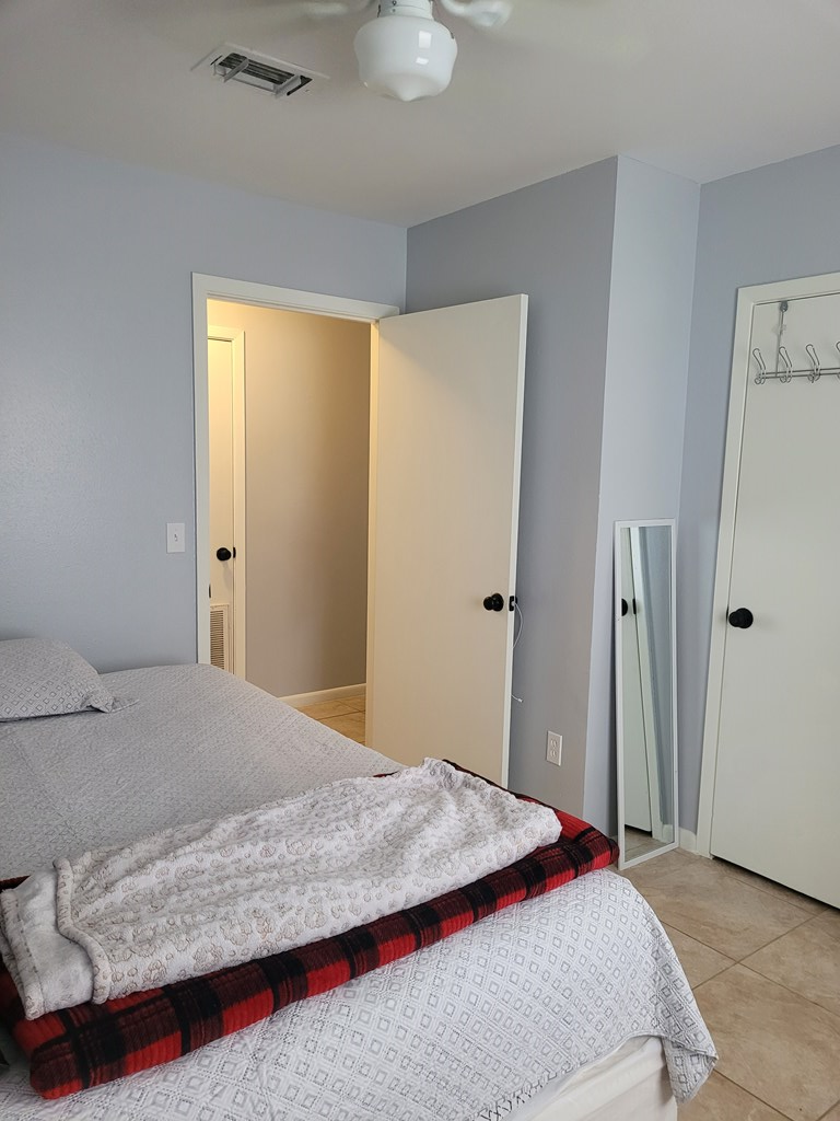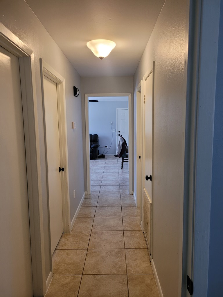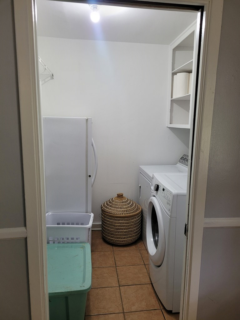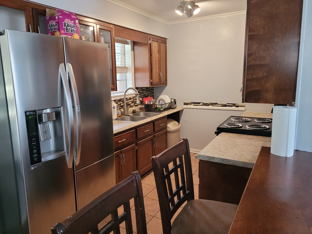 Move-in Ready, 3/1.5-Freshly painted inside & out-tile floors thur-out-Great patio area/ large fenced backyard-new LED lighting under porch eaves-All appliances stay( refrigerator, washer/dryer, freezer, range w/overhead microwave, sitting on Large lot.