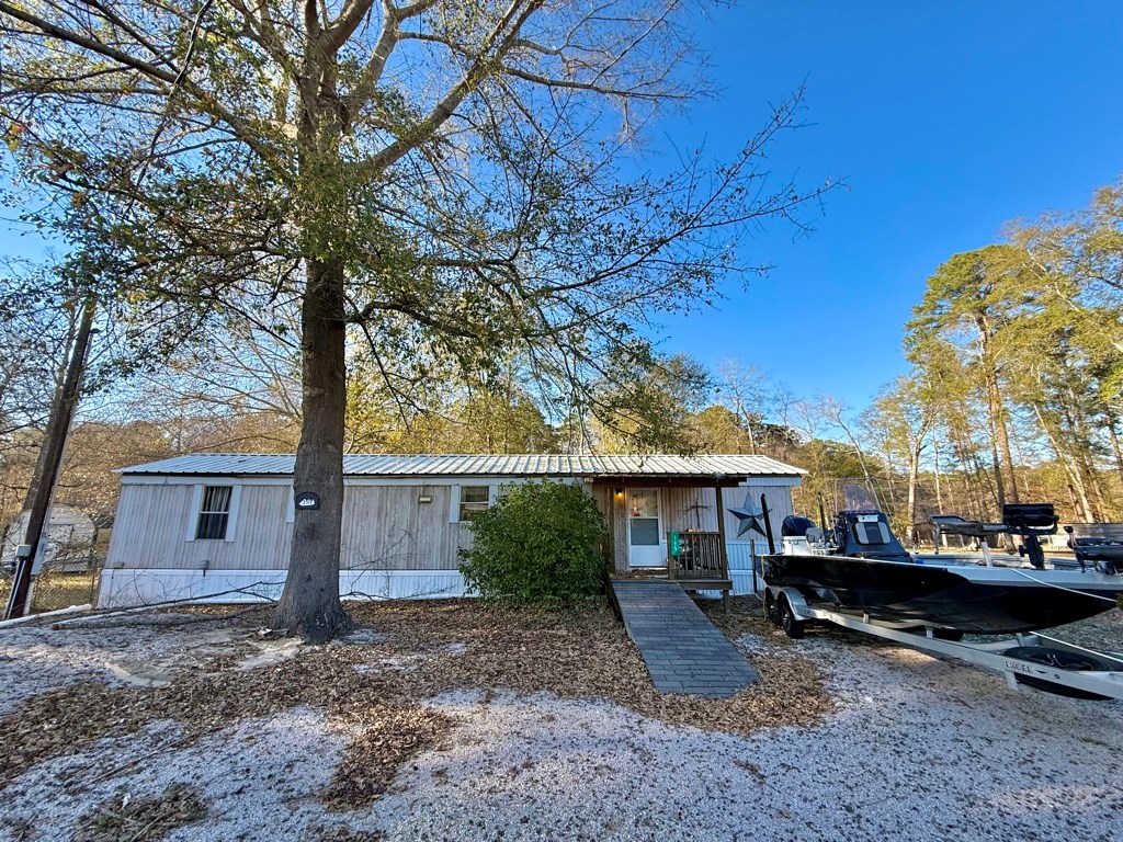 Enjoy lake living on legendary Toledo Bend Lake with this 2-bedroom, 1-bath manufactured home situated on a waterfront lot in the desirable mid-lake area near Alpine Marina. Relax on the covered front porch or take in the relaxing nature of this property from the large covered back porch, perfect for entertaining or unwinding after a day on the lake. The property features a three-sided pole barn, ideal for boat, tractor, or equipment storage. Boaters will love the private boat ramp and pier, providing direct access to some of the best fishing and recreation Toledo Bend has to offer. Whether you're looking for a weekend getaway, fishing camp, or full-time lake home, this property delivers comfort, convenience, and unbeatable waterfront access.