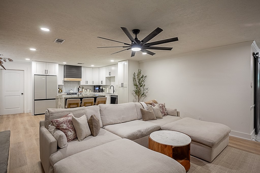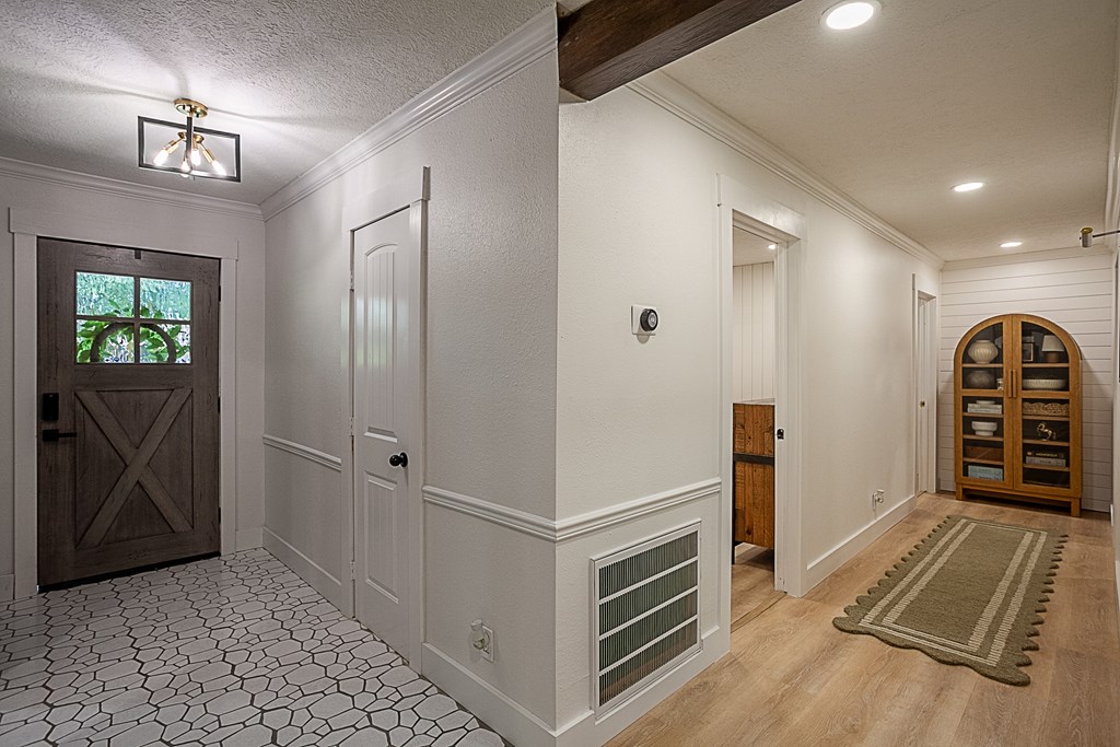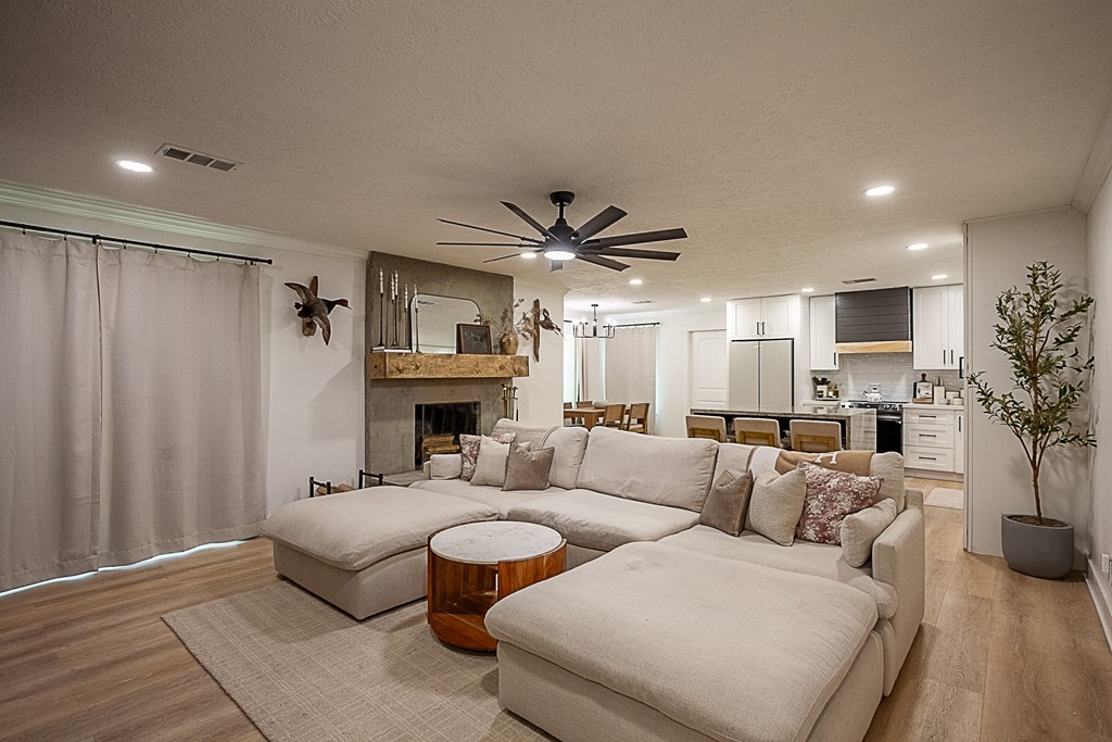This stunning 3-bedroom, 2-bath home sits on 1.36 acres and features a 2-car garage finished with epoxy floors. Fully remodeled including new roof, the home boasts an open-concept kitchen with a large quartzite island, shaker-style soft-close cabinets, quartz countertops, an eat-in area, and a spacious butler's pantry. The open layout flows into the living area, complete with a wood-burning fireplace accented by a cement surround and custom mantle. A large utility room provides extra convenience. With two living areas and private home office, there's plenty of room for both relaxation and productivity. The master suite is a true retreat, offering dual sinks, an oversized soaking tub with over head shower and a large walk-in closet with ample storage. Blending modern finishes with thoughtful design, this move-in-ready property offers comfort, space, and style—all in the center of Lumberton.