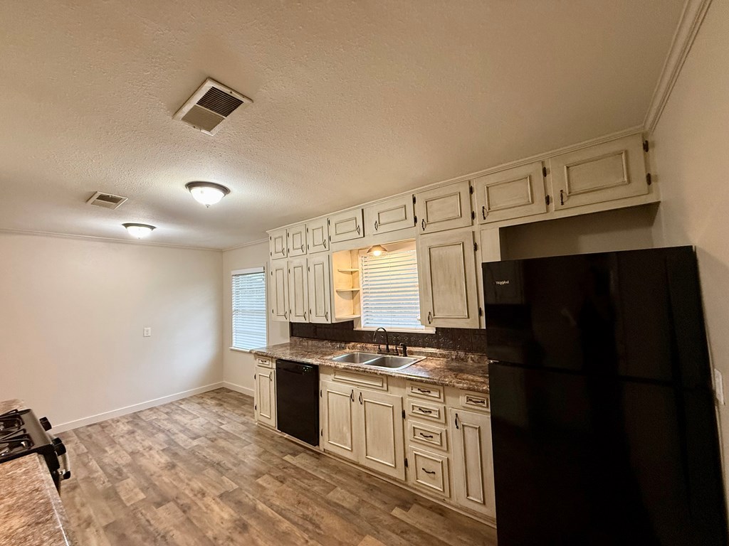 Price Reduced!! Why Rent, when you can own?! Affordable three-bedroom, one-bath home on a desirable corner lot! Perfect for starting out or scaling down, this property features a small, mostly fenced backyard and an open-concept living, dining, and kitchen layout. Freshly painted in a neutral color palette, the home has been recently leveled with a transferable warranty, includes new subfloors, and boasts brand-new LVP flooring in the main living areas and bathroom. A two-car attached carport keeps you dry, while the oversized utility room offers ample storage and freezer space. Major updates include a newer roof, water heater, and more—making this home move-in ready. Conveniently located near everything our town has to offer, this sought-after neighborhood makes a smart choice for your family. Schedule your showing today!