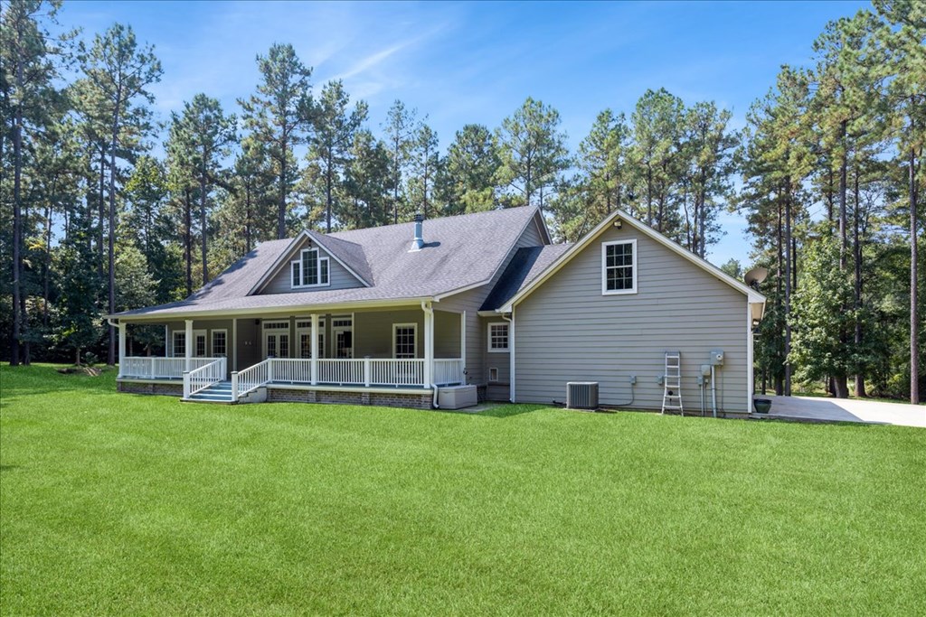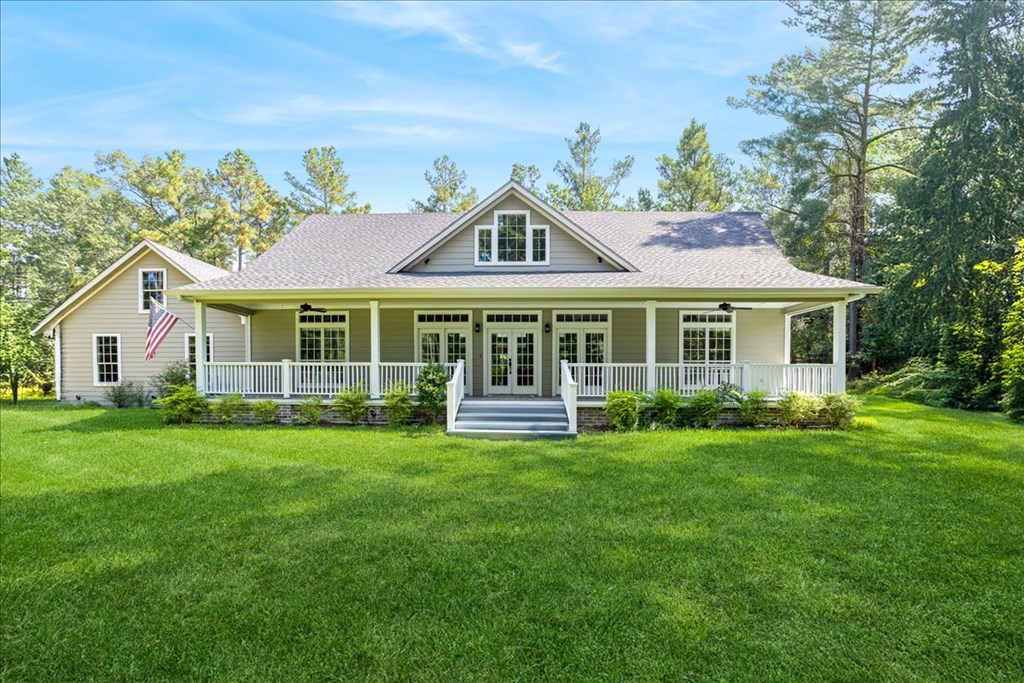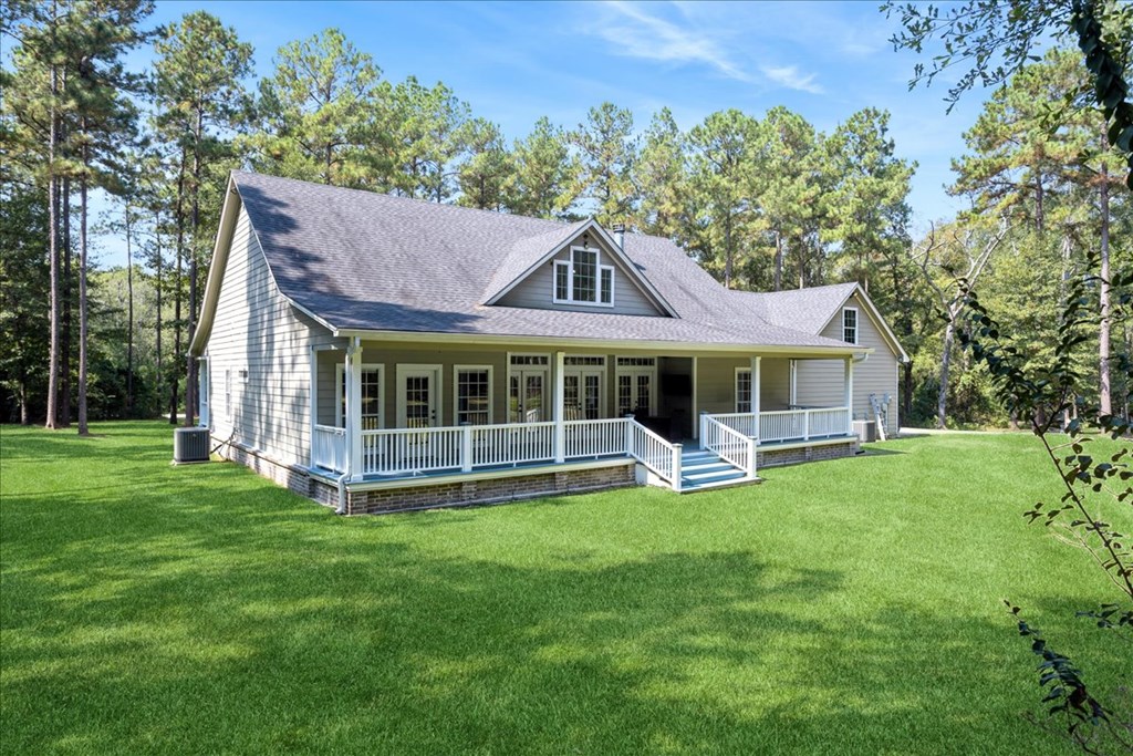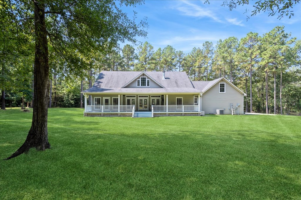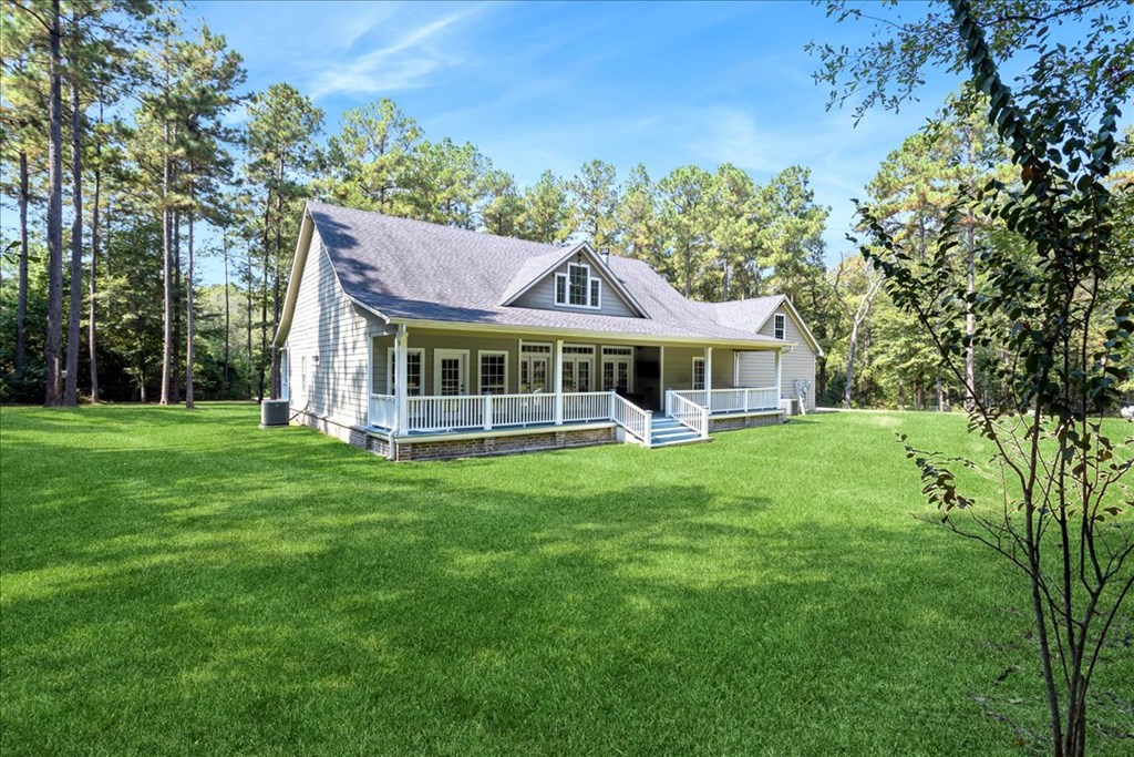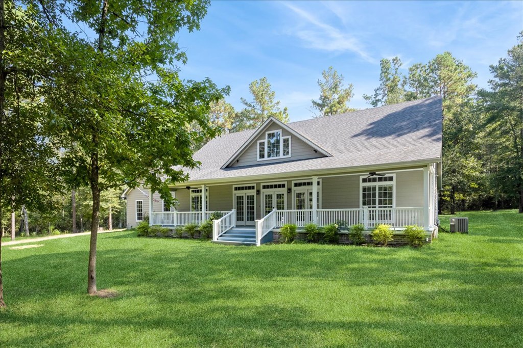 Breathtaking 3-bedroom, 2-bath home in the prestigious Westwood Bend subdivision, located in the Hudson ISD. Sitting on 4.6 acres, this stunning home boasts timeless charm with a full-length covered front porch, wide steps, ceiling fans, and a porch swing. Step inside to an open-concept layout featuring an elegant island kitchen with granite countertops, stainless steel appliances, gas range with pot filler, cathedral ceiling with tongue-and groove wood & massive ceiling fans. Natural light pours through large windows into the kitchen, dining, and living areas. Beautiful wood flooring provides the right accent and charm. Gorgeous living room w/gas starter fireplace. Luxurious master suite with box ceiling, spa-like bathroom, and massive walk-in closet. Additional bedrooms also feature box ceilings with tongue-and-groove wood. Enjoy covered front and back porches with matching wood ceilings and fans, plus an unfinished upstairs bonus space and a 3-car garage with golf cart bay & MORE!!