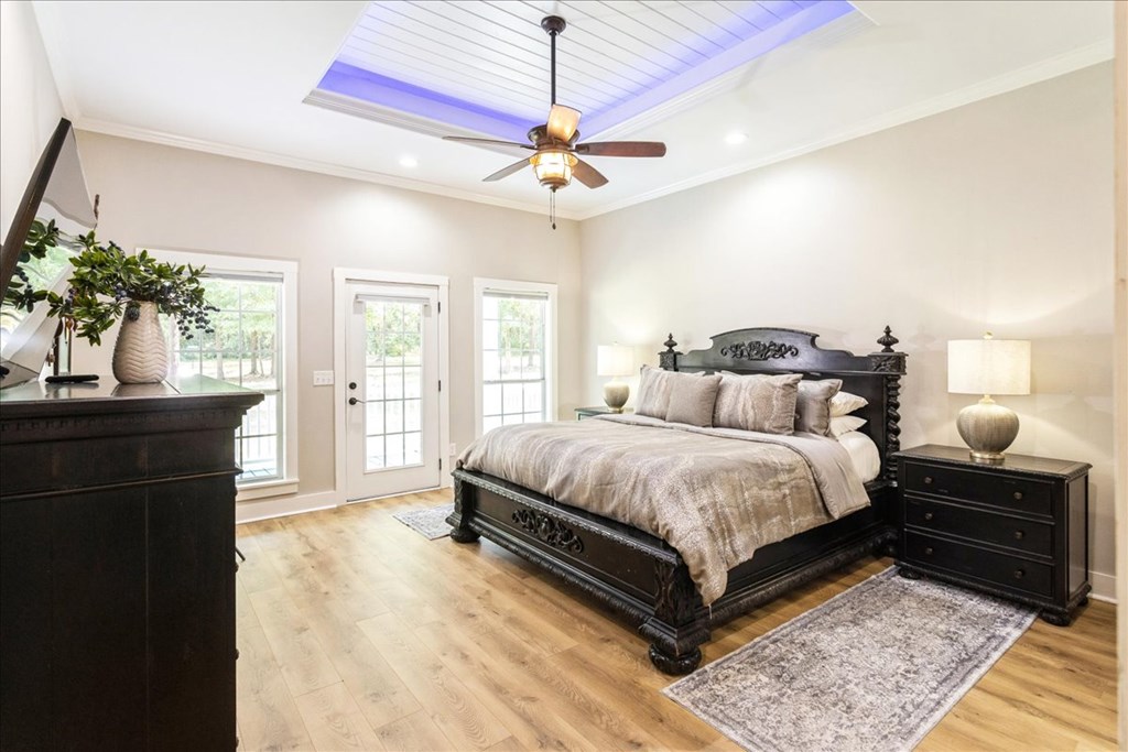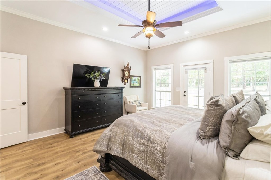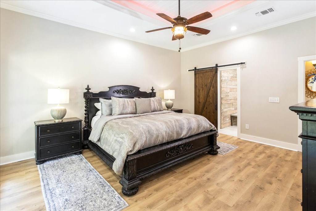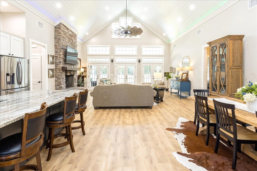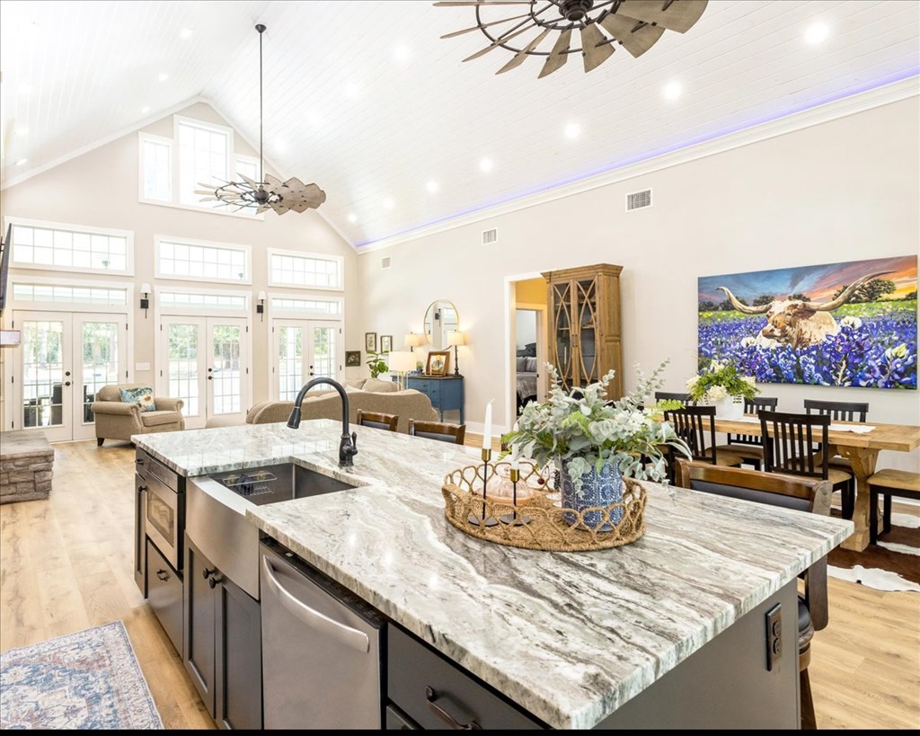 Breathtaking 3-bedroom, 2-bath home in the prestigious Westwood Bend subdivision, located in the Hudson ISD. Sitting on 4.6 acres, this stunning home boasts timeless charm with a full-length covered front porch, wide steps, ceiling fans, and a porch swing. Step inside to an open-concept layout featuring an elegant island kitchen with granite countertops, stainless steel appliances, gas range with pot filler, cathedral ceiling with tongue-and groove wood & massive ceiling fans. Natural light pours through large windows into the kitchen, dining, and living areas. Beautiful wood flooring provides the right accent and charm. Gorgeous living room w/gas starter fireplace. Luxurious master suite with box ceiling, spa-like bathroom, and massive walk-in closet. Additional bedrooms also feature box ceilings with tongue-and-groove wood. Enjoy covered front and back porches with matching wood ceilings and fans, plus an unfinished upstairs bonus space and a 3-car garage with golf cart bay & MORE!!