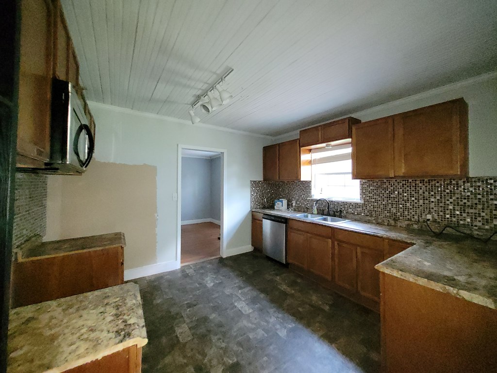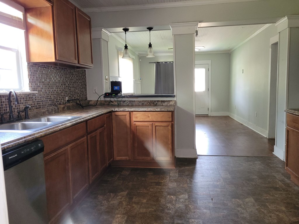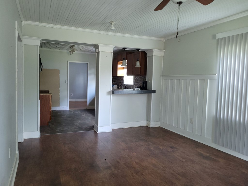 This charming older home has great potential for downsizing or starter home. in the heart of Kirbyville & close to all amenities. It's a 2 bed/1 bath & separate dining room sitting on a little under 1/4 acre. Inside laundry rm has plenty of room for freezer & additional storage. The well shaded backyard is a great place for entertaining or just relaxing. Waiting for your personal touches & some needed tlc. The portable ac unit & storage bldg will convey.