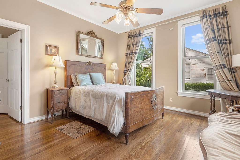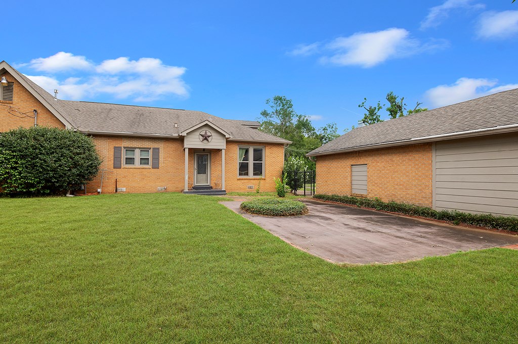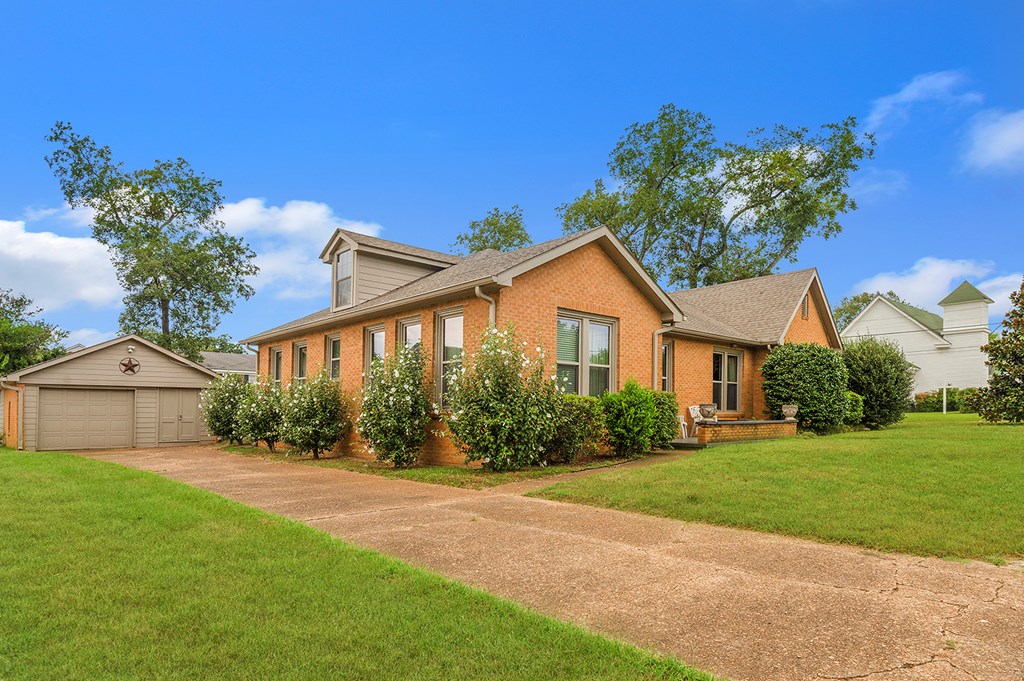 Charming 1937 Tudor Home in Historic San Augustine, TX. Enjoy the tranquility of small-town living in one of Texas' oldest and most picturesque towns. Beautifully maintained Tudor-style brick home blends timeless character with thoughtful modern updates. Step inside to discover rich hardwood floors, classic crown and base moldings, and five generously sized bedrooms, perfect for families or guests. Updates include central air and heat, double-insulated windows, and upgraded plumbing, wiring, and attic insulation (all completed in 2004), offering both comfort and efficiency. The home's exterior features durable, low-maintenance Hardi-Board siding and a fully fenced backyard framed by lush, mature landscaping, ideal for relaxing or entertaining. Set on a spacious corner lot, you'll enjoy a scenic view of the historic First Presbyterian Church (est. 1836) and be just two blocks from charming downtown. Rare opportunity to own a piece of East Texas history with all the modern comforts.