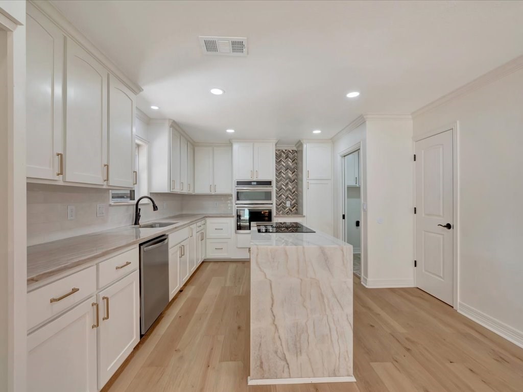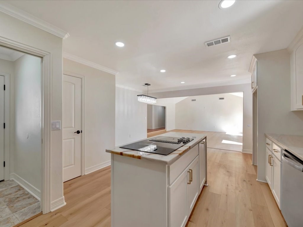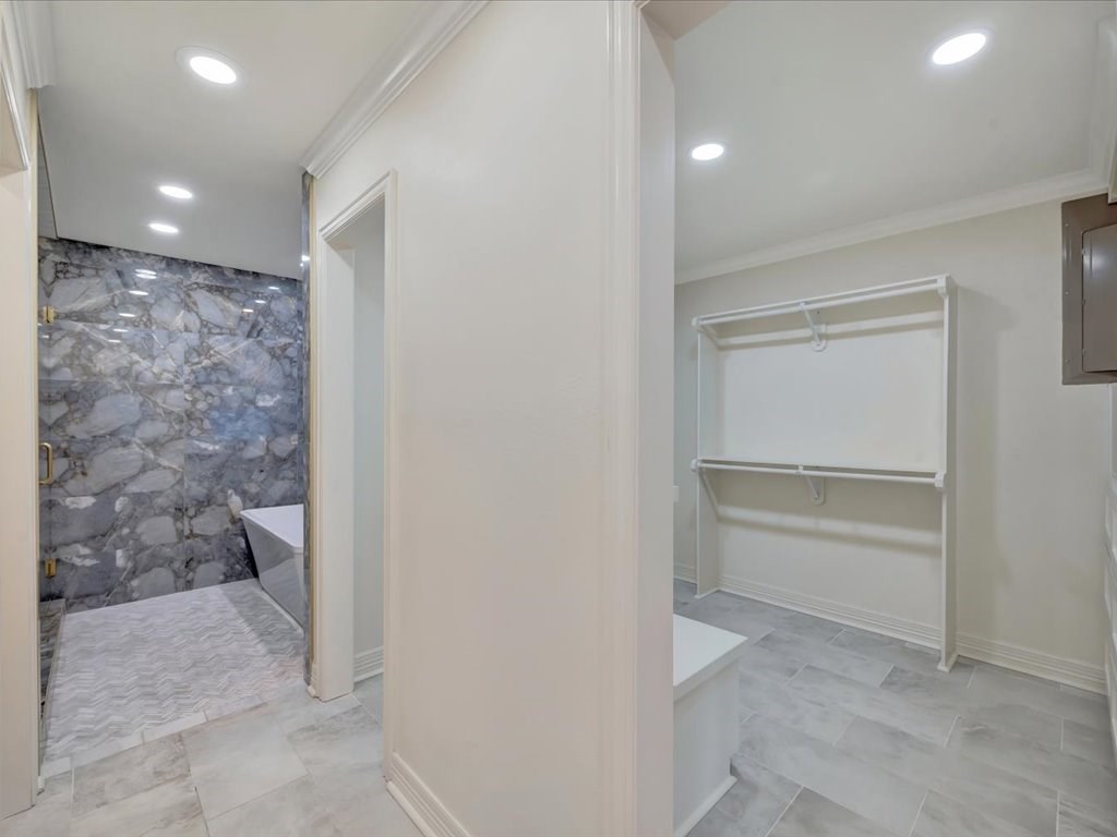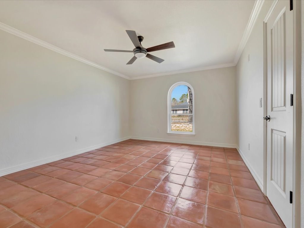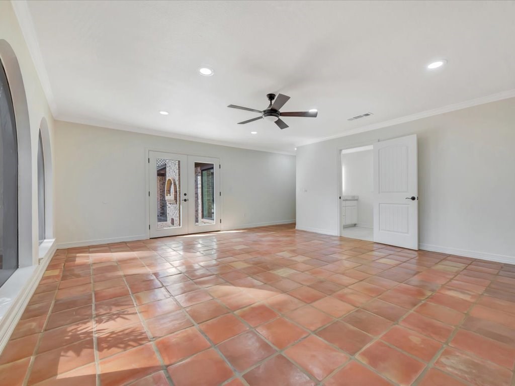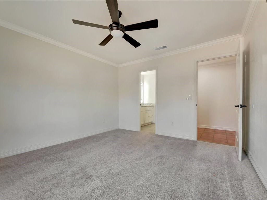 Stunning golf course home located in the prestigious Crown Colony subdivision overlooking the 15th hole. This beautifully renovated residence blends classic architecture with modern finishes, creating a move in ready home that feels timeless and fresh. Step inside to an expansive open living area featuring vaulted ceilings with exposed beams, and a striking brick fireplace framed by oversized windows that showcase the peaceful golf course views and flood the space with natural light. The fully updated kitchen offers sleek cabinetry, stone countertops and was designed to entertain. The oversized primary suite is a true retreat highlighted by dramatic arched windows. The state-of-the-art primary bathroom delivers a spa like experience with designer stone, custom finishes, luxury fixtures and a statement walk in shower. Additional bedrooms are spacious and inviting. Outside you will enjoy the covered patio overlooking the manicured green.