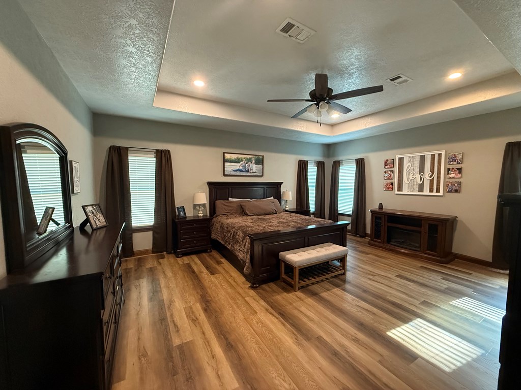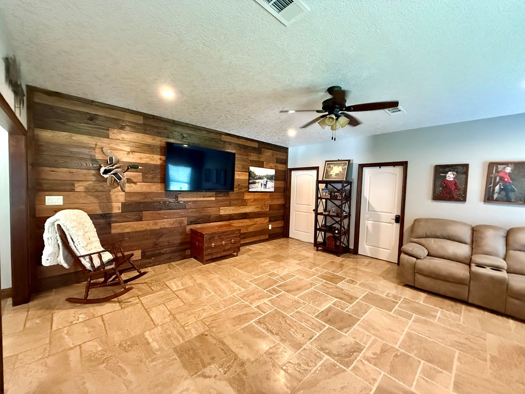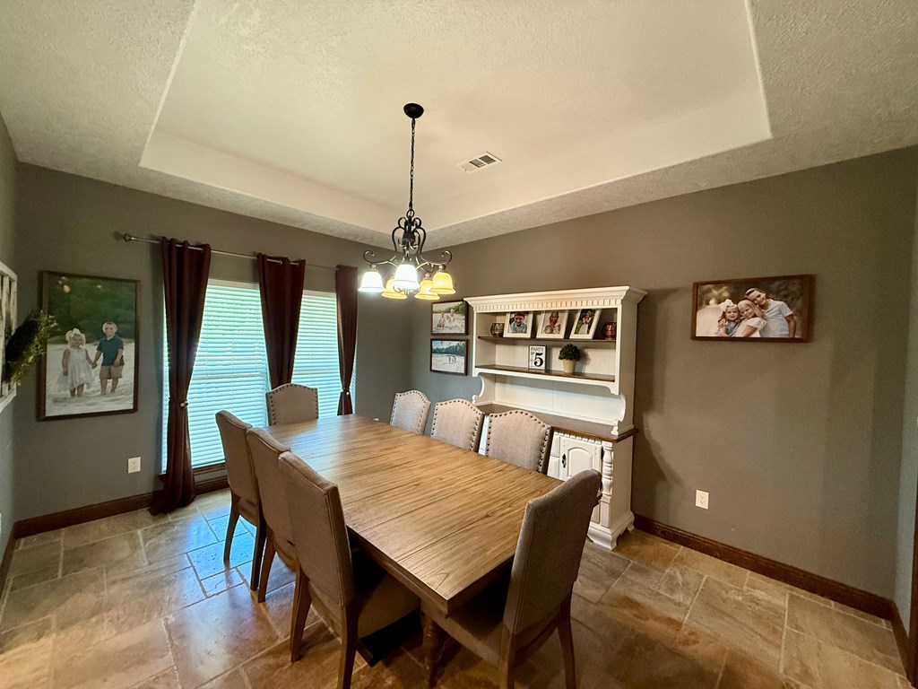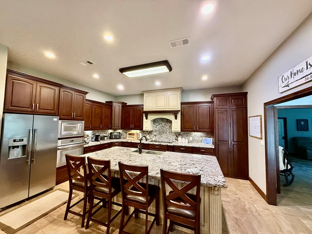 Nestled in the pines and unseen from the road, this custom brick-and-stone residence balances everyday function with quiet seclusion on 26+ acres. Inside, an open concept invites gathering—granite counters, stainless appliances, and an oversized island center the kitchen, while a hidden walk-in pantry keeps the look clean. A wood-burning fireplace adds glow to the main living area, complemented by secondary living and dining spaces for effortless entertaining. The primary suite feels like a retreat with dual closets and a spa-inspired bath featuring a bench-seat shower, jetted tub, dedicated vanity, and abundant cabinetry. On the opposite wing, a Jack-and-Jill bath smartly connects two bedrooms. With an attached two-car garage, storage throughout, and a substantial on-slab shop for vehicles, equipment, or hobbies, this homestead is ready for whatever comes next—enjoy it mostly wooded or shape it to your vision.