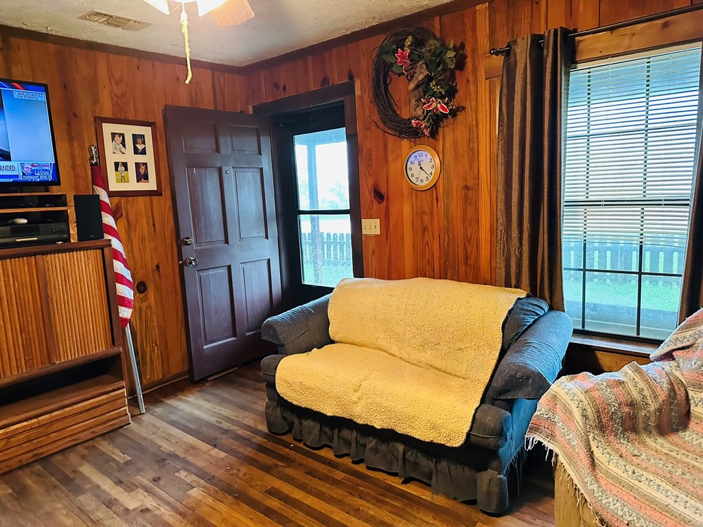 Charming country home with stunning sunset view ready for you to enjoy porch sitting! Your very own peaceful retreat on one acre, complete with beautiful covered front and back porches, hardwood floors, new stove (2025), refrigerator stays with the home, HVAC replaced in 2020, roof replaced 2018, water heater replaced 2024, woodburning fireplace, 30x30 building (barn) on slab, room to roam, and so much more... Call and schedule your appointment and make this charmer close to town, yours! Tiny home can be purchased separately.