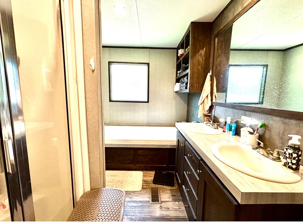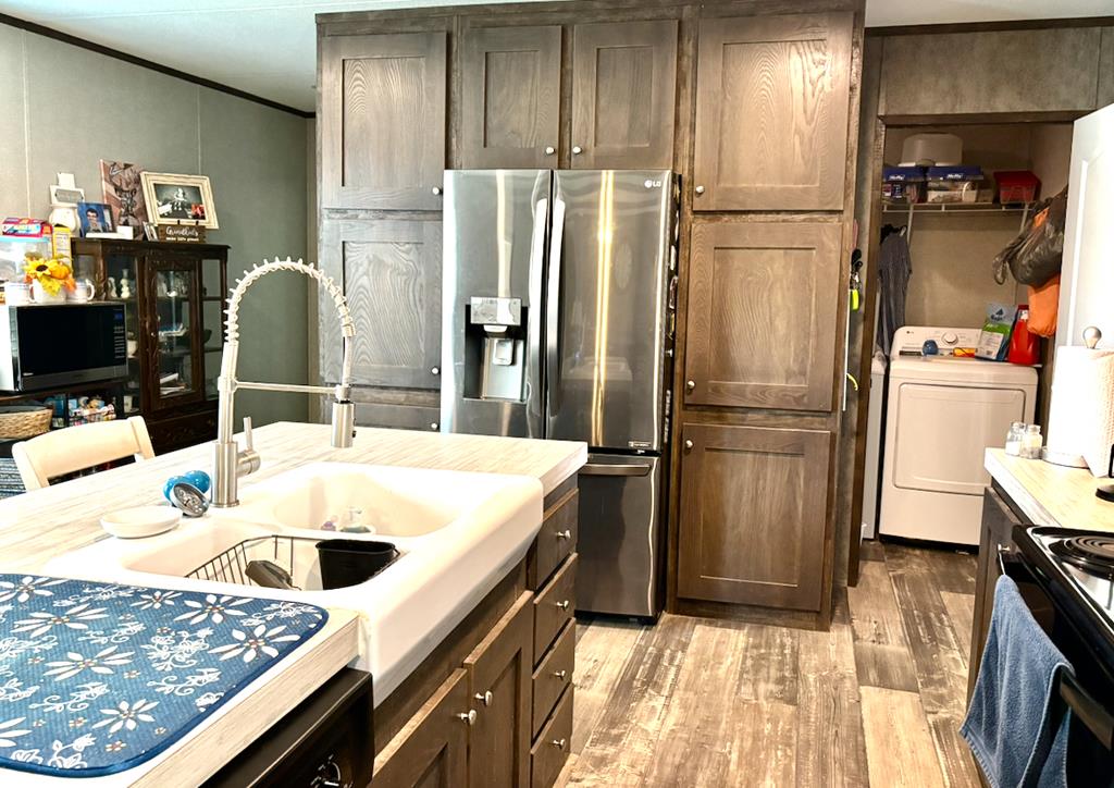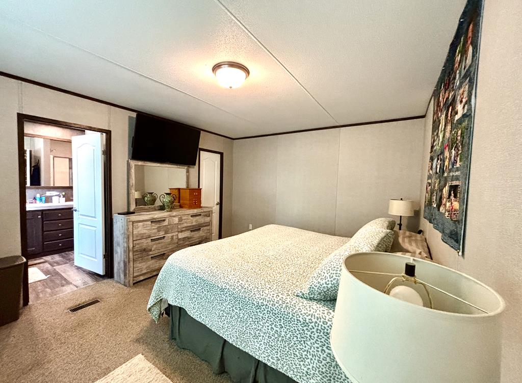 Whether you're looking for a camp at Toledo Bend Lake or for a full time home - come take a look at this well-kept 2021 manufactured home located in El Camino Subdivision. The 3B/2B home offers 1216 sq.ft. living space with an open floor plan. A large eat-at island with a dishwasher is the main focal point of the kitchen which also features a stainless steel refrigerator with double ice maker. Laundry room/pantry is just off the kitchen and conveniently located to the screened-in back porch. The large master bedroom has an en suite with double lavatories, soaking tub, and separate shower. Outside you will find a small water view (better in the fall/winter when the leaves are gone), 14'x21' covered front porch, screened back porch, 16'x12' portable building and a double enclosed garage with automatic door. PLUS, just yards away is a 14'x21' dock for your use to tie your boat up. Call today to schedule your private tour!!