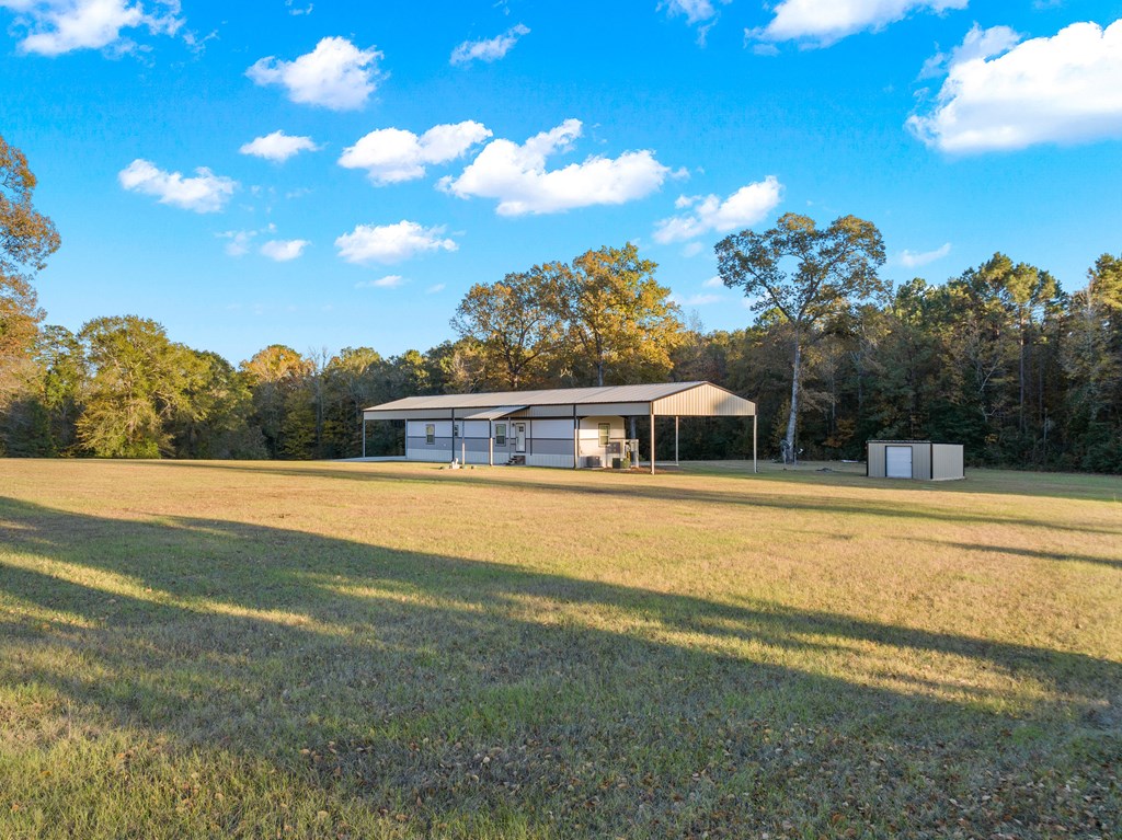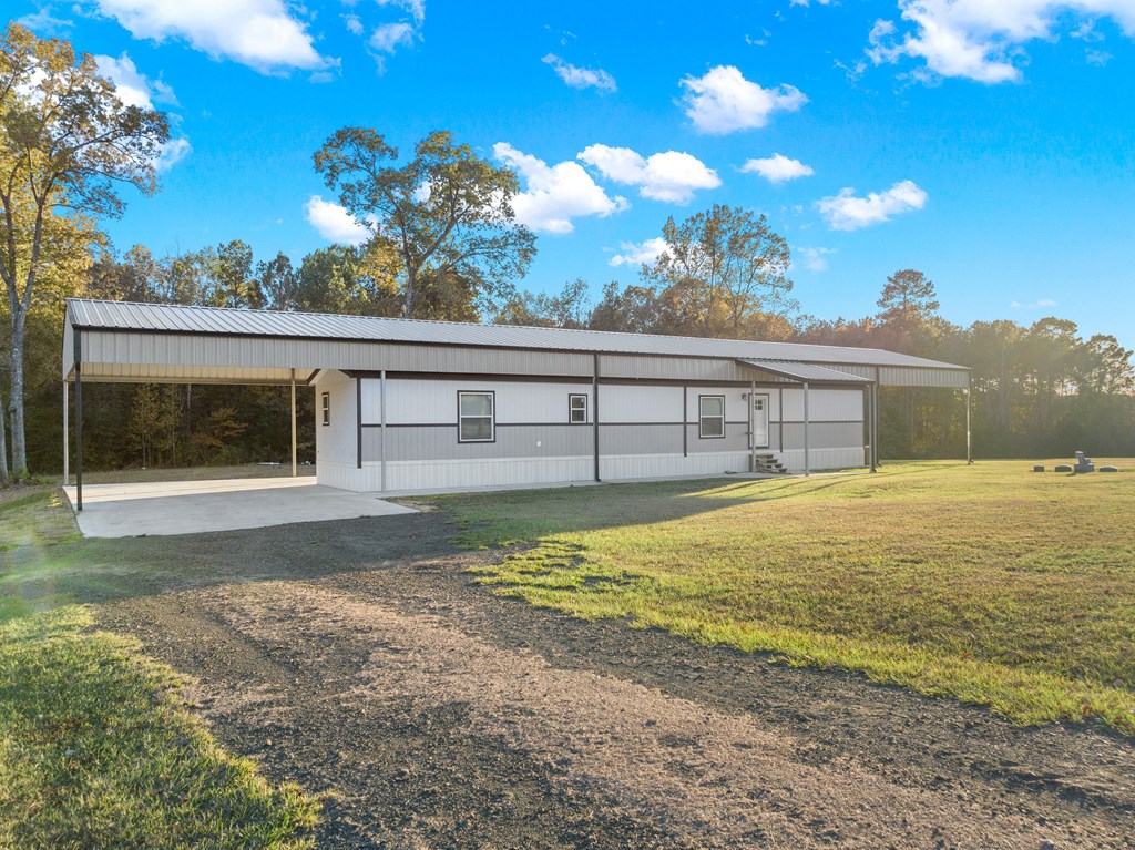 Rare find: 20 gorgeous unrestricted acres with outstanding development potential — just 2.2 miles from the Hwy 96 & Hwy 83 intersection in Pineland! Prime unrestricted land with endless possibilities: perfect for RV park, tiny home community, subdivision, multi-family, commercial venture, or private estate. Excellent road frontage, serene creek, & incredible lake proximity (8 min to San Augustine Park, 16 min to Mill Creek on Sam Rayburn, 24 min to Six Mile on Toledo Bend). Includes a like-new 2024 manufactured home in immaculate condition — 3-bed, 2-bath split plan with sleek modern design, open living areas & large breakfast bar kitchen. Protected under a massive 125' x 35' metal cover that provides spacious covered carport & inviting covered porch on a concrete slab, plus insulated shed with well & bonus storage. Move-in-ready home + high-potential development land + unbeatable lake-area location. This rare, versatile & immediately usable property won't last — call today!