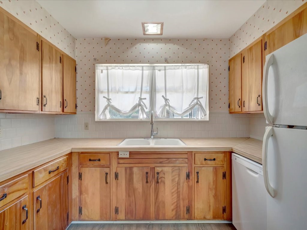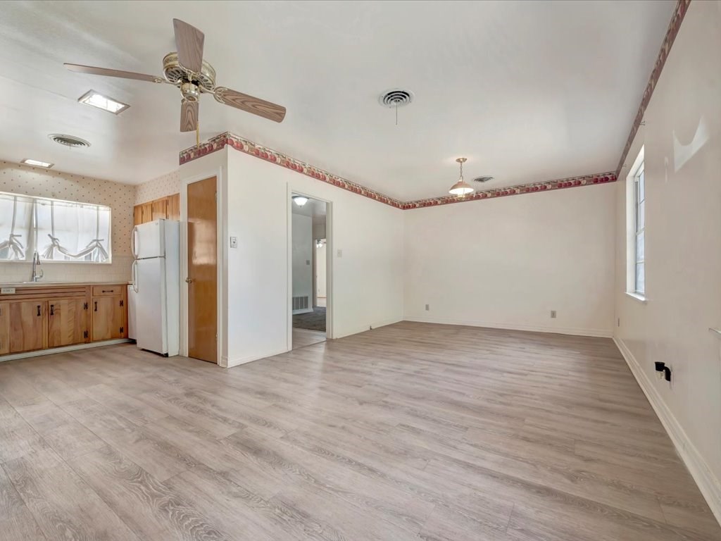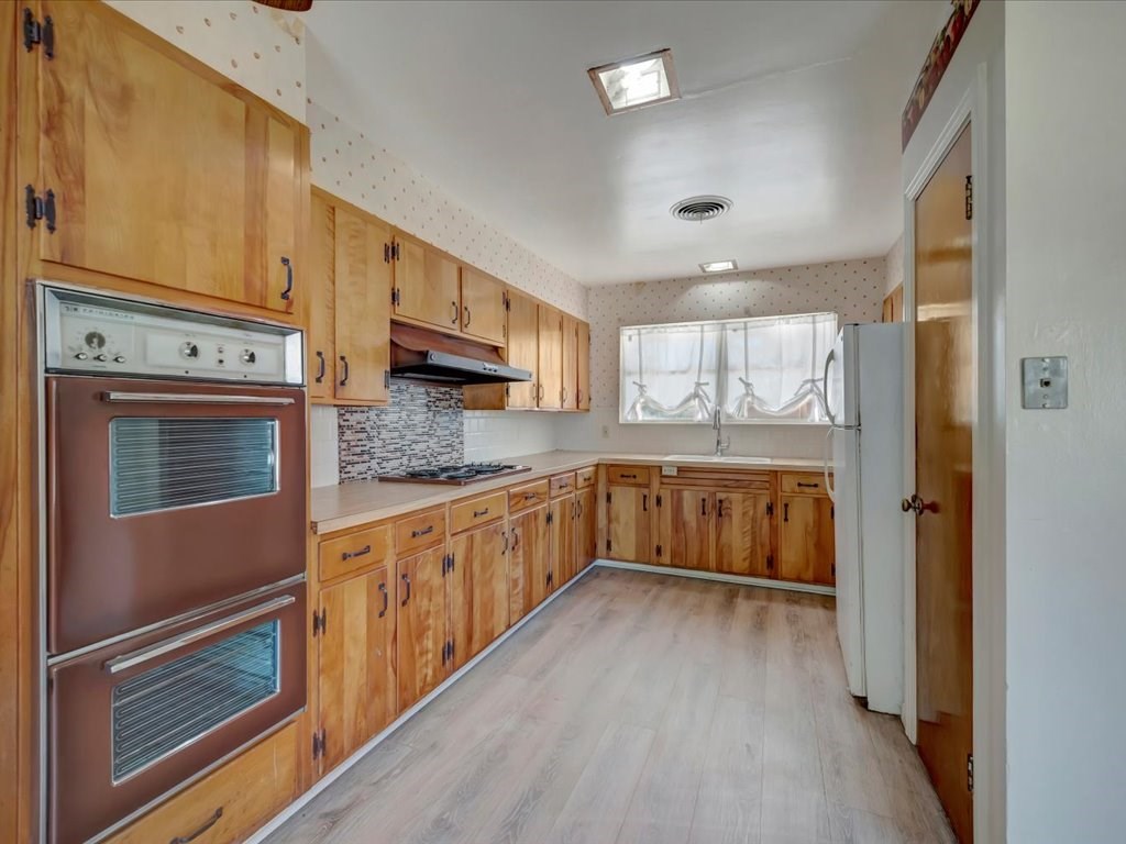 This spacious three-bedroom, two-bathroom home offers endless potential and is ready for your personal touch. Inside, you'll find a large living room perfect for entertaining, a generous kitchen with an oversized breakfast nook, and a roomy laundry area with ample storage throughout. The thoughtful floor plan provides a functional flow, creating a comfortable space to call home. Outside, enjoy a fully fenced backyard ideal for pets or gardening, along with a large front yard that enhances curb appeal. The spacious garage offers plenty of room for parking, hobbies, or projects, while the outdoor storage shed adds extra convenience. All appliances convey with the property, making it truly move-in ready. With its solid structure, great layout, and inviting potential, this property is an excellent opportunity for investors or anyone eager to add their own style and transform it into the perfect home.