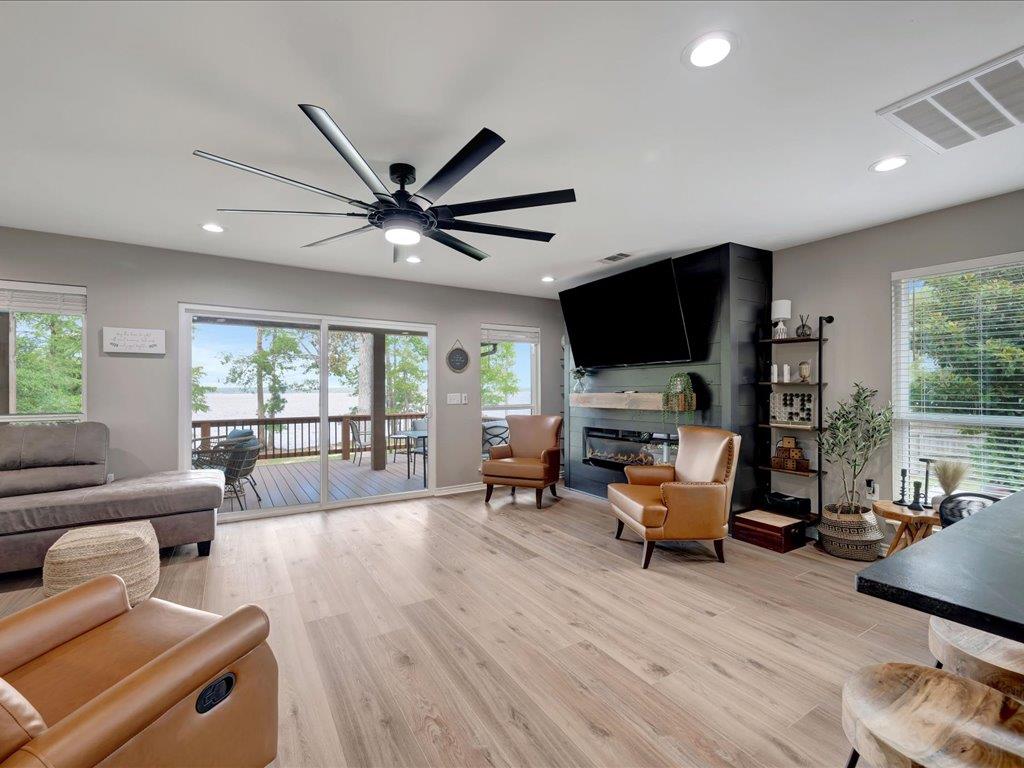 Lakefront Luxury Meets Laid-Back Living! Welcome to your dream lake escape on beautiful Lake Sam Rayburn — a 2023 fully remodeled waterfront retreat that perfectly blends comfort, style, and income potential! Currently an established income-producing property, this stunning 5-bedroom, 2.5-bath home sleeps up to 11 guests and located just minutes from Hanks Creek boat ramp. Step inside and fall in love with the open-concept living area, cozy up next to the electric fireplace and enjoy the lake views that flow seamlessly to your covered patio — the perfect spot to take in breathtaking sunrises over the water. The primary suite is your private retreat, offering stunning lake views to wake up to every morning. Outdoors, gather around the firepit under the stars, enjoy lakeside lounging, or launch your water adventures just steps from your back door. Whether you're seeking a turnkey vacation rental, a family getaway, or a forever lakefront home, Water filtration system. Selling furnished!
