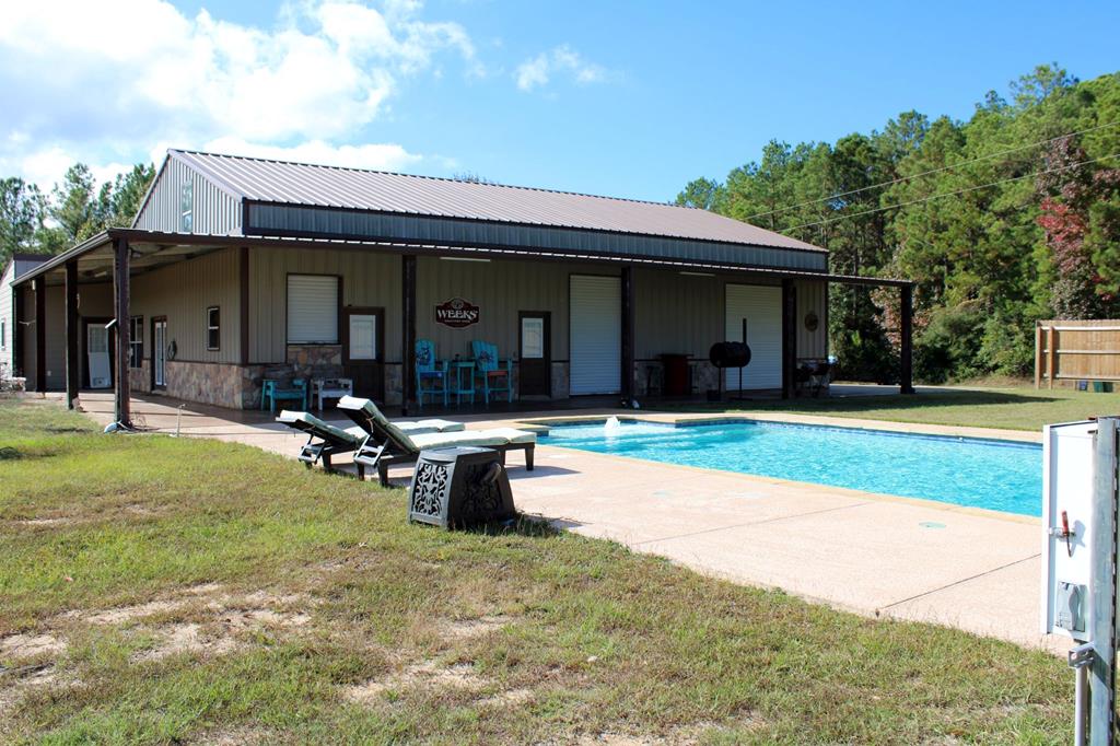 Experience country living with style and comfort in this stunning barndominium on 3.86 beautiful acres. Featuring two large bay doors, this versatile space is perfect for entertaining, storage, or your next creative project. Inside, you'll love the open-concept layout that blends rustic charm with modern design. The spacious primary suite is a showstopper—complete with a huge walk-in shower that feels like a private spa. Step outside to your backyard oasis featuring a sparkling pool and scenic pond, ideal for quiet evenings or weekend gatherings. With room to roam, a peaceful setting, and endless versatility, this property is perfect for those seeking both relaxation and functionality—all within the desirable Tiger Creek area.