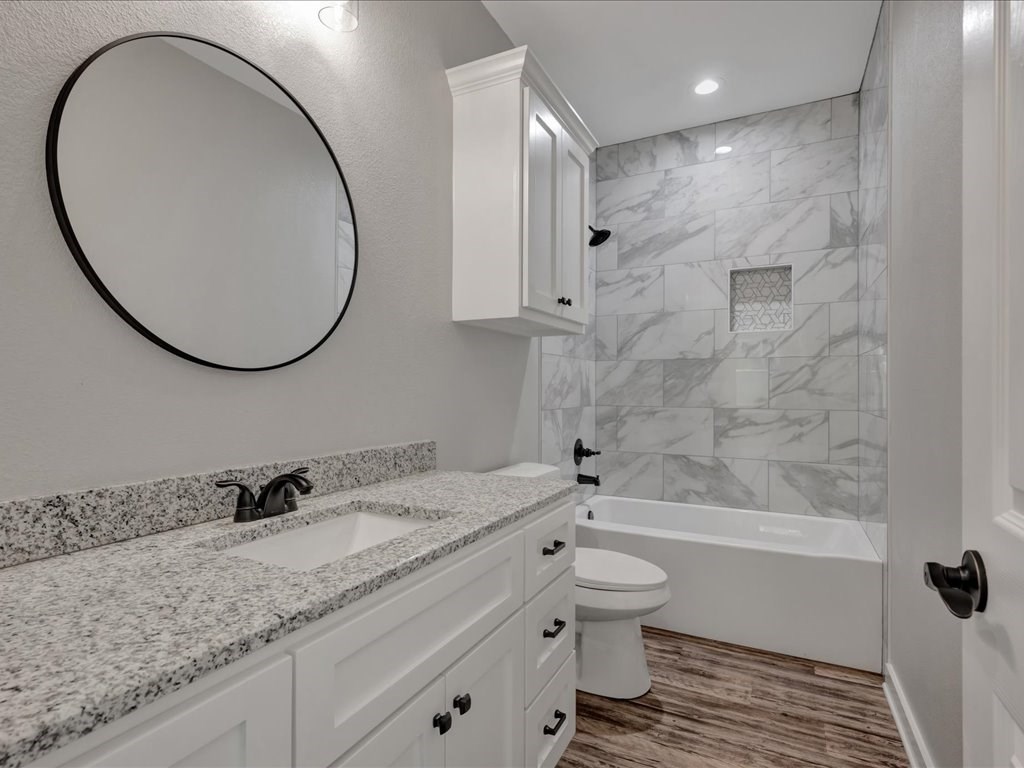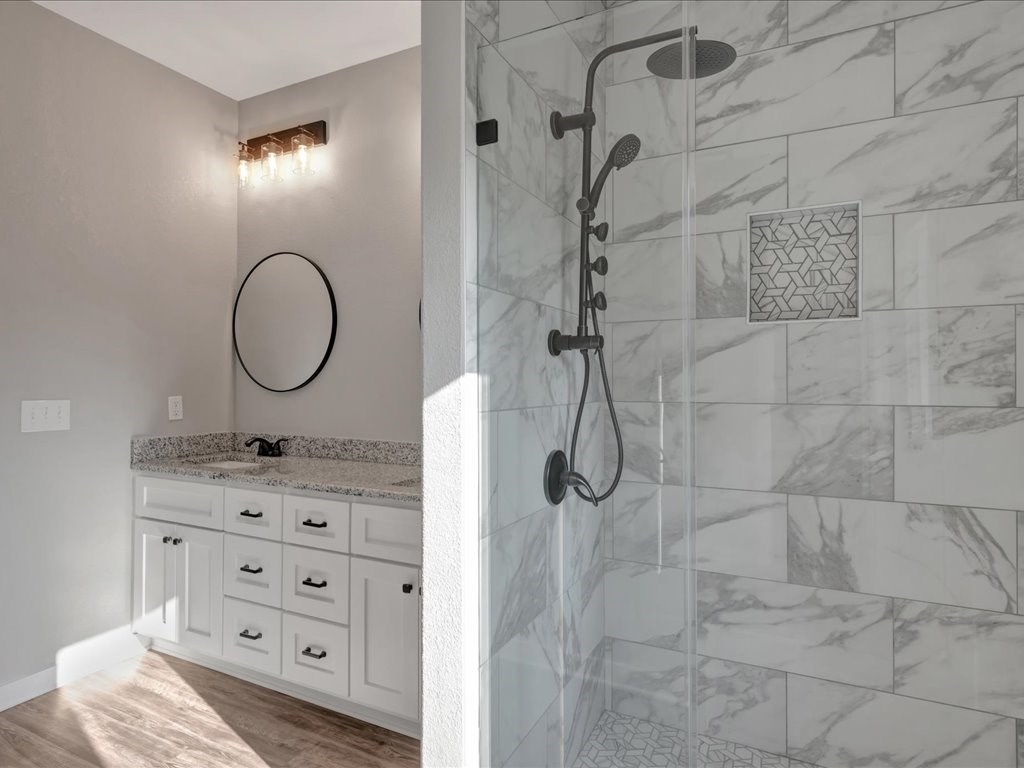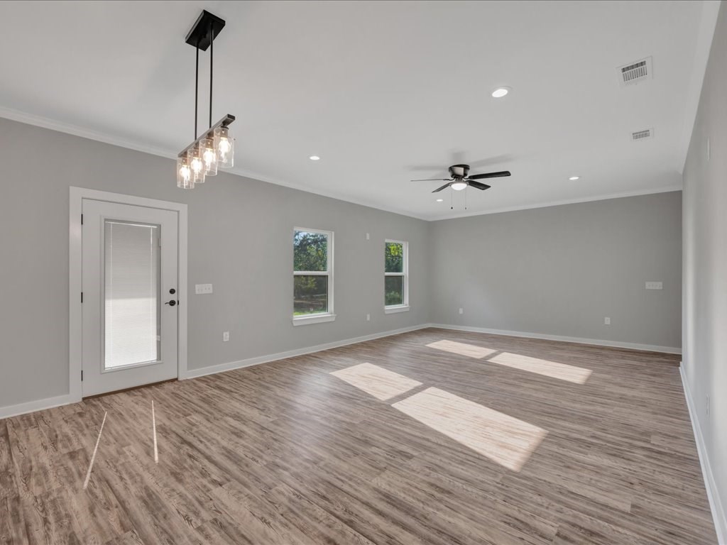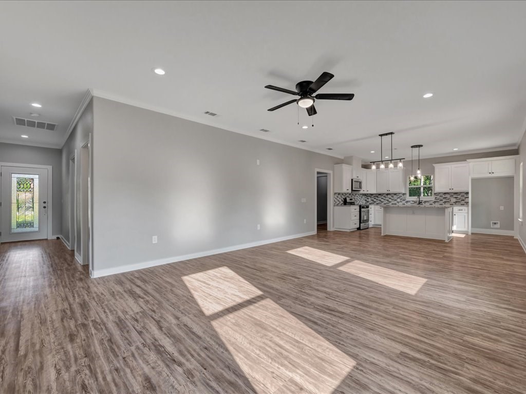 Welcome to your dream home! This stunning new construction features three spacious bedrooms and two beautifully designed bathrooms, all situated on a fantastic lot. The home showcases beautiful stone accents on the exterior, creating a striking first impression. The stylish neutral palette throughout allows for easy personalization, while durable vinyl flooring offers low-maintenance living without sacrificing elegance. The modern kitchen is a culinary delight, complete with exquisite granite countertops and a large island, perfect for gatherings and entertaining. Recessed lighting throughout the home. Step outside to the covered back patio, an ideal spot for morning coffee or evening relaxation, where you can enjoy the serenity of your surroundings. Don't miss the chance to make this exceptional new home yours, schedule your showing today!