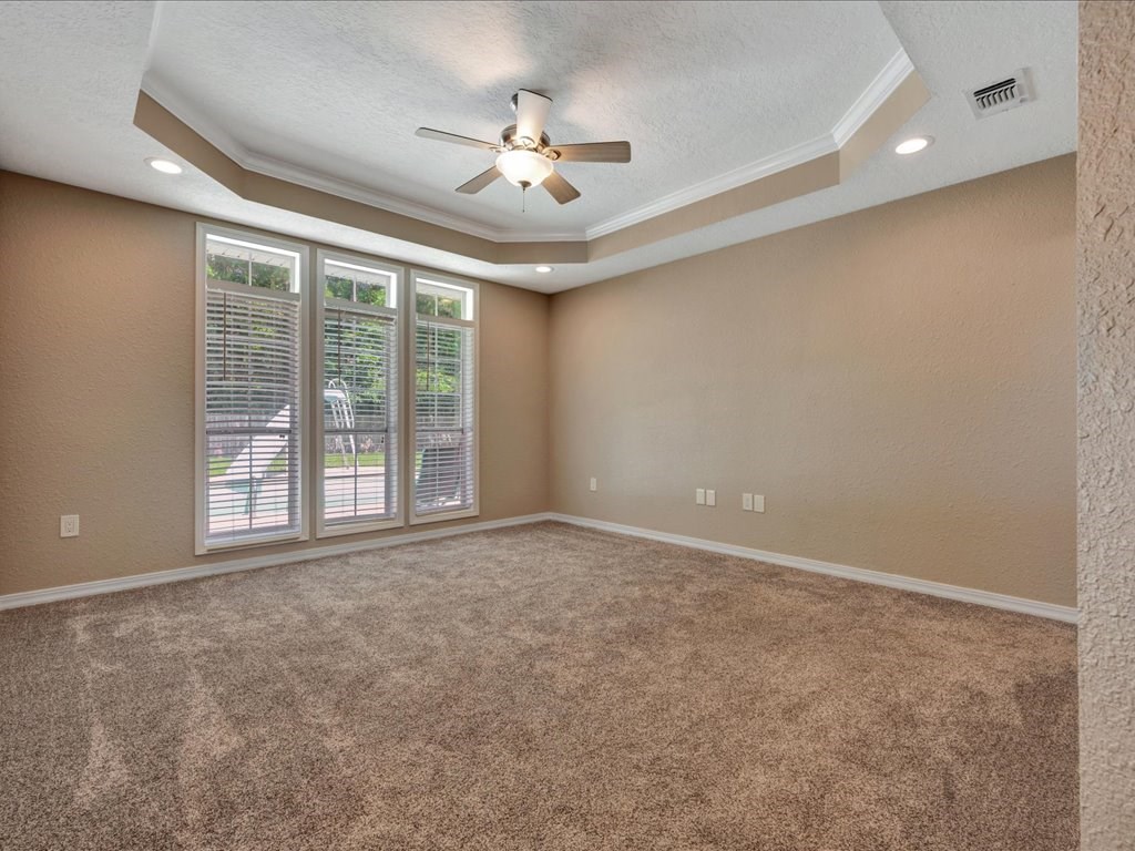 Ceiling Fan(s), Breakfast Bar, Woodburning Fireplace, Boxed Ceiling, Pantry