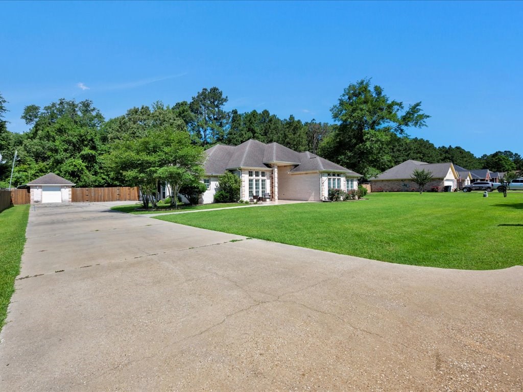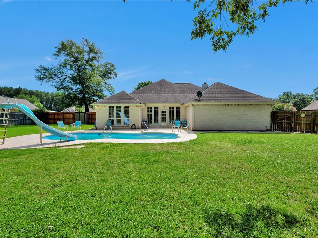Spacious and inviting, this 4-bedroom, 3-bath home sits on a large lot with plenty of room to live, relax, and entertain. The generous family room features a cozy corner wood-burning fireplace, creating the perfect spot for unwinding. Enjoy flexible dining with a formal dining room and a separate breakfast area. The kitchen offers stainless steel appliances, a breakfast bar, and a pantry for extra storage. A split bedroom layout ensures privacy, with the primary suite highlighted by a huge walk-in closet. A bright sunroom overlooks the backyard oasis, complete with an inground pool and patio for summer fun. The expansive yard includes lush green grass, a fenced backyard great for pets or play, a storage building on a slab, and an additional covered area ideal for lawn equipment. This home blends comfort, space, and outdoor living—don't miss it! 3D floor plan available in attached links.